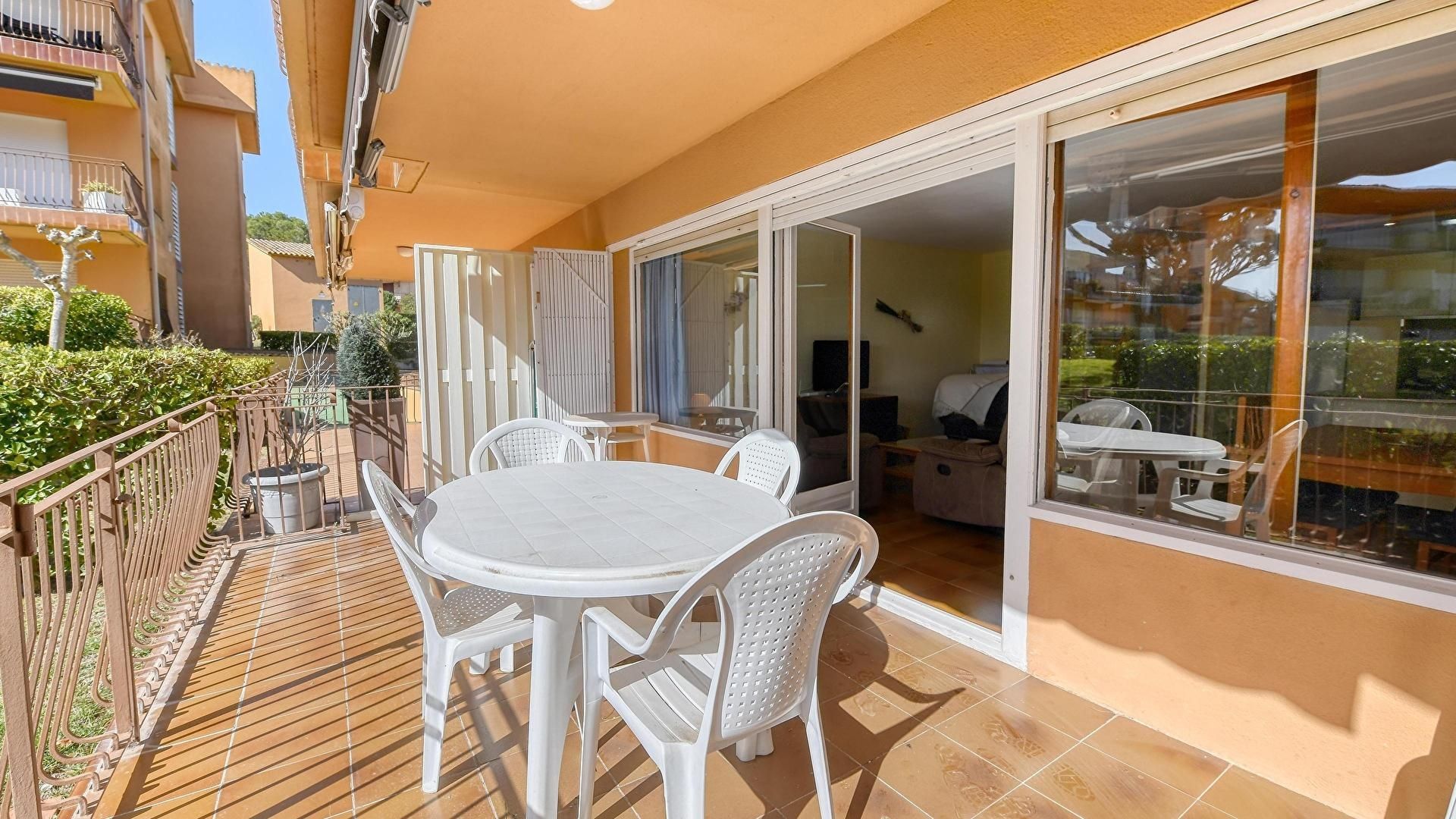 - Salle de séjour, téléviseur et sortie sur la terrasse.