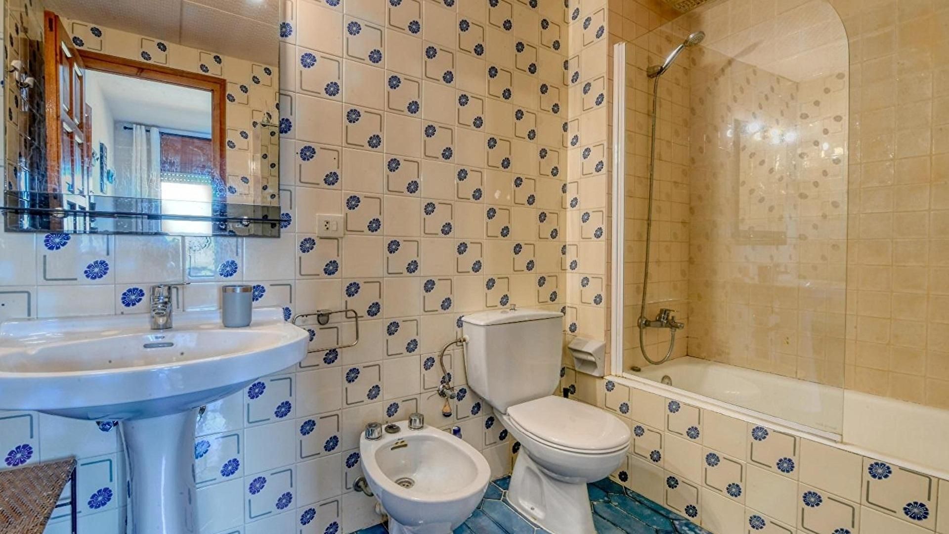 Salon, cuisine, 3 chambres, 1 salle de bain et 1 salle de bain avec douche.