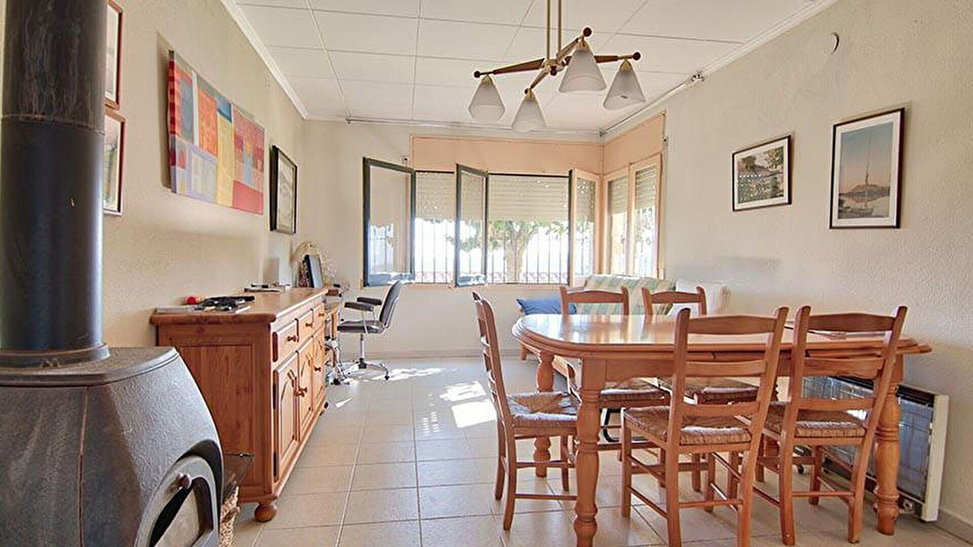 - Salle de séjour avec cheminée et sortie au jardin privé.