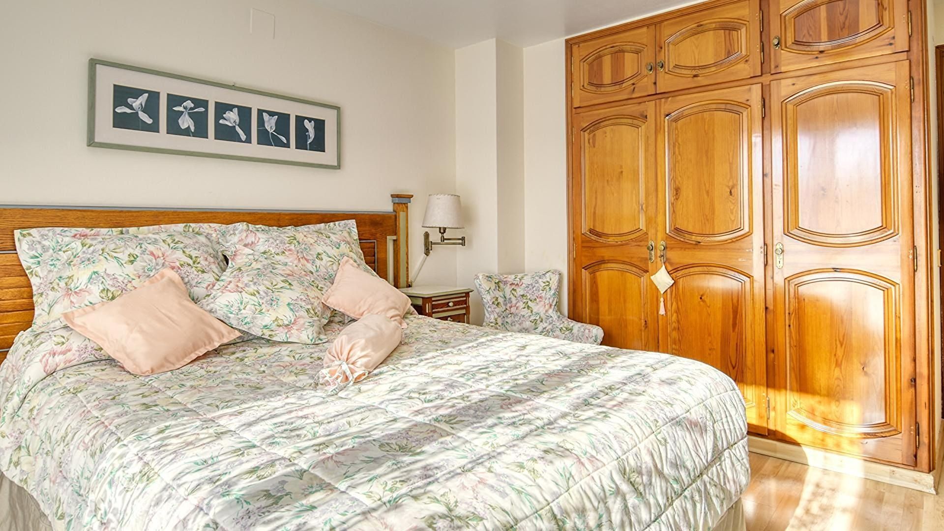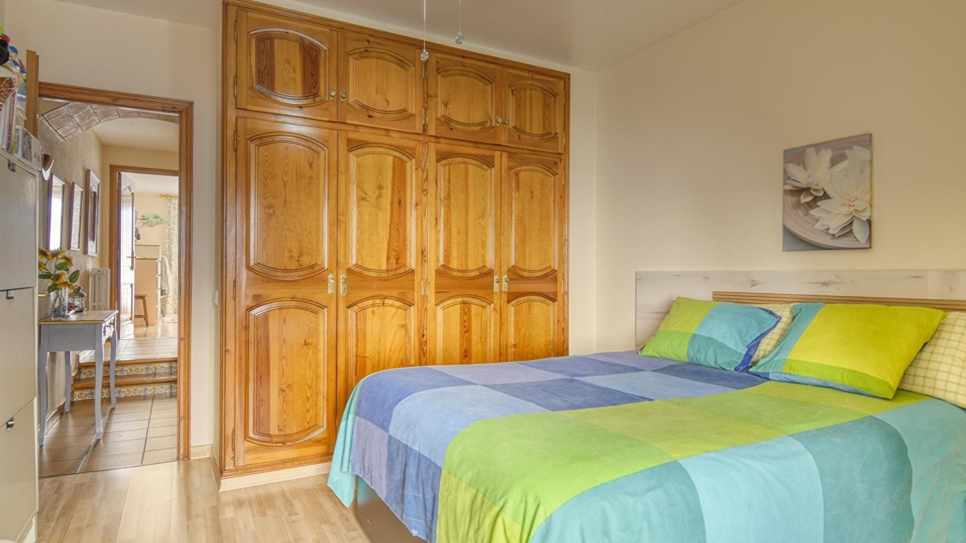 - Chambre avec 1 lit double, ventilateur de plafond et sortie sur la terrasse-solarium.