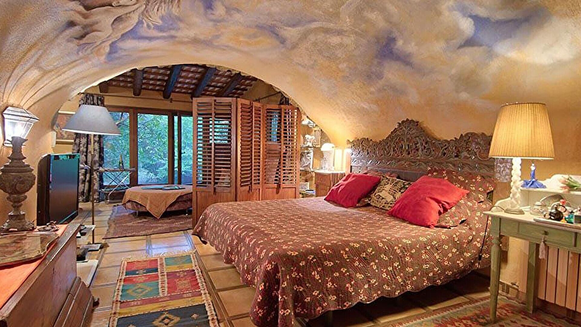 Jardin avec piscine, porche, chill-out, salle de séjour, kitchenette, 5 chambres, 4 salles de bains, 1 toilette, mezzanine et bibliothèque.