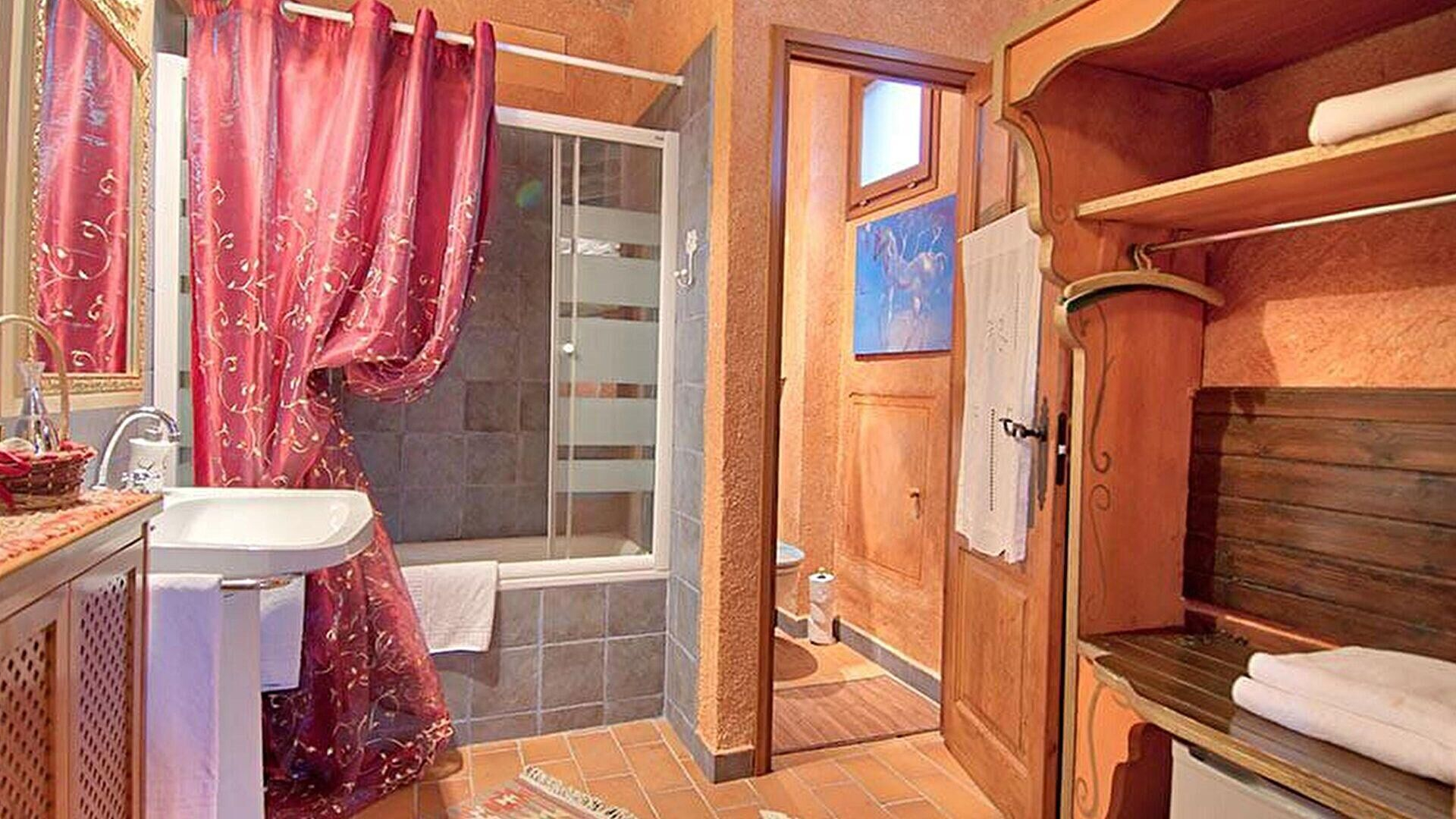 - Chambre avec 1 lit double, salle de bain (en suite) et sortie au jardin privé.