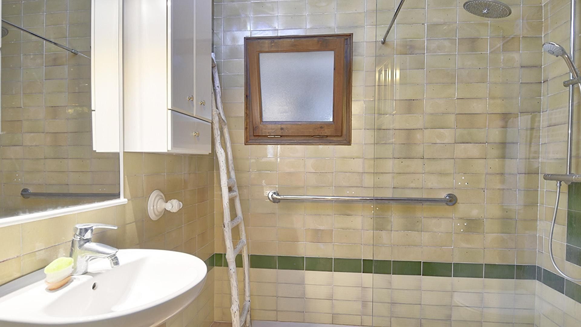 - Salle de bain avec douche avec radiateur électrique.