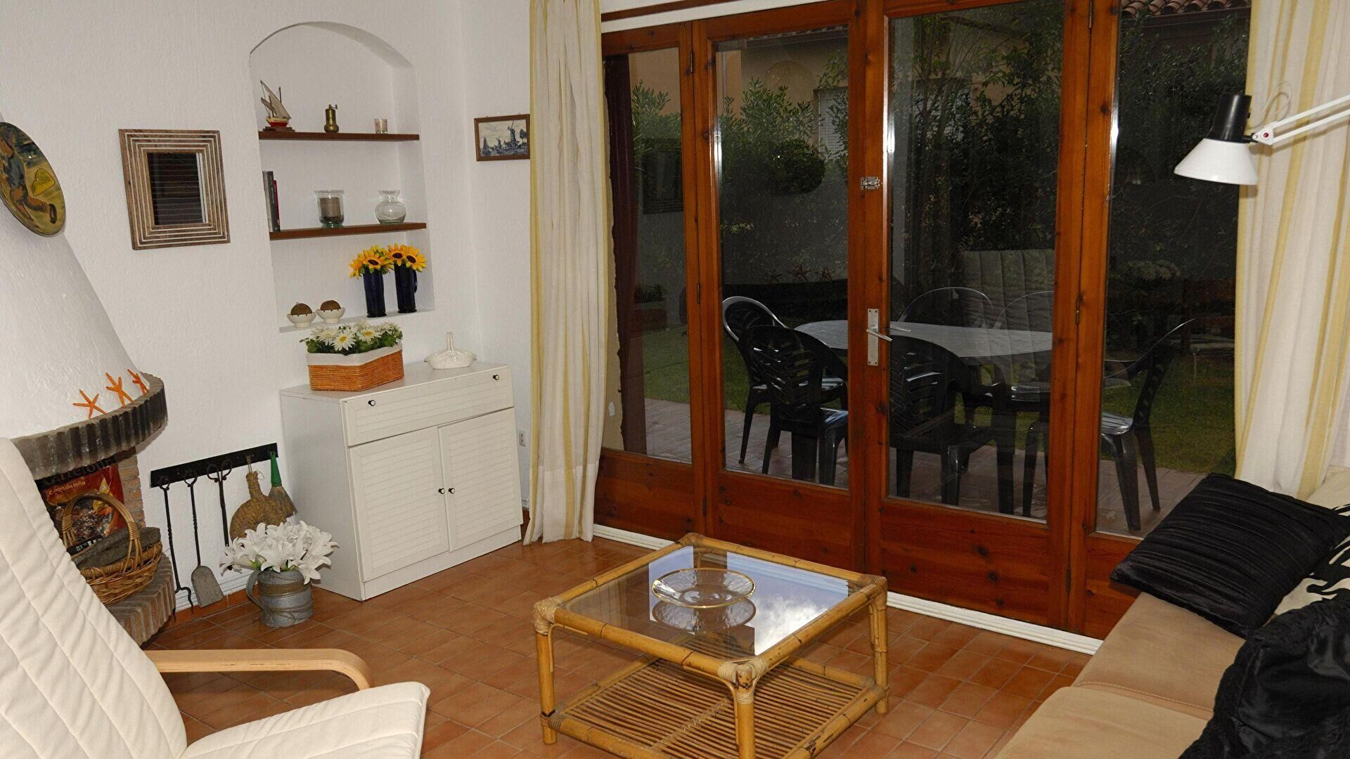 - Comedor-estar con 1 sofá cama individual, chimenea, televisor, salida a la terraza y salida al jardín.