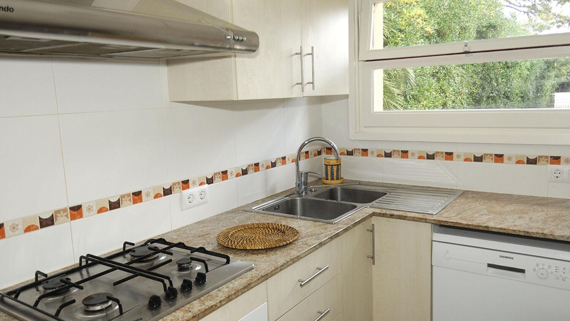 Cocina reformada, facilidad de aparcamiento, lugar tranquilo y mobiliario sencillo.