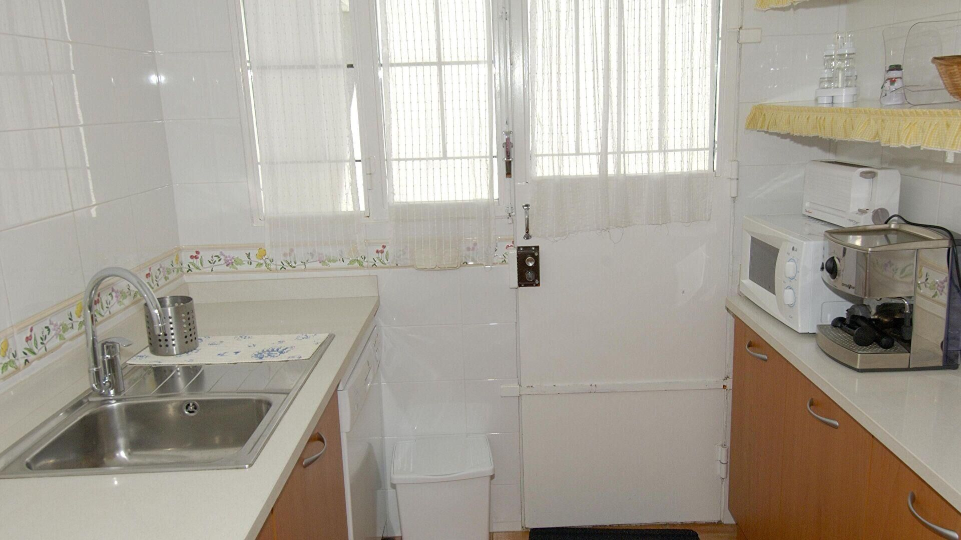 - Cocina con horno, microondas, nevera, lavaplatos y lavadora.