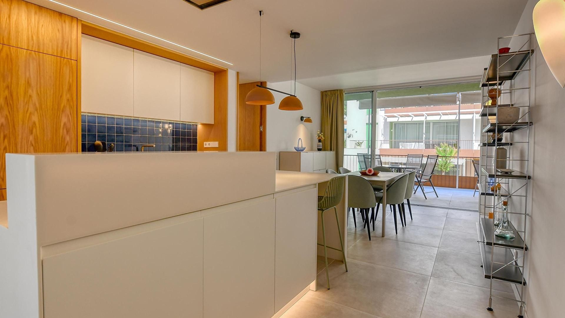 - Cocina americana con placa de inducción, lavaplatos, combi y salida a la terraza.