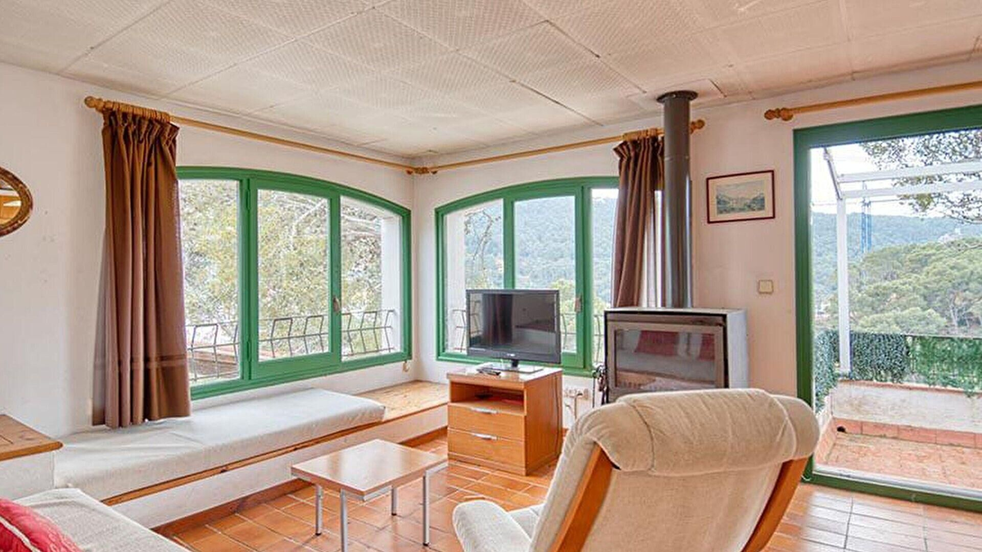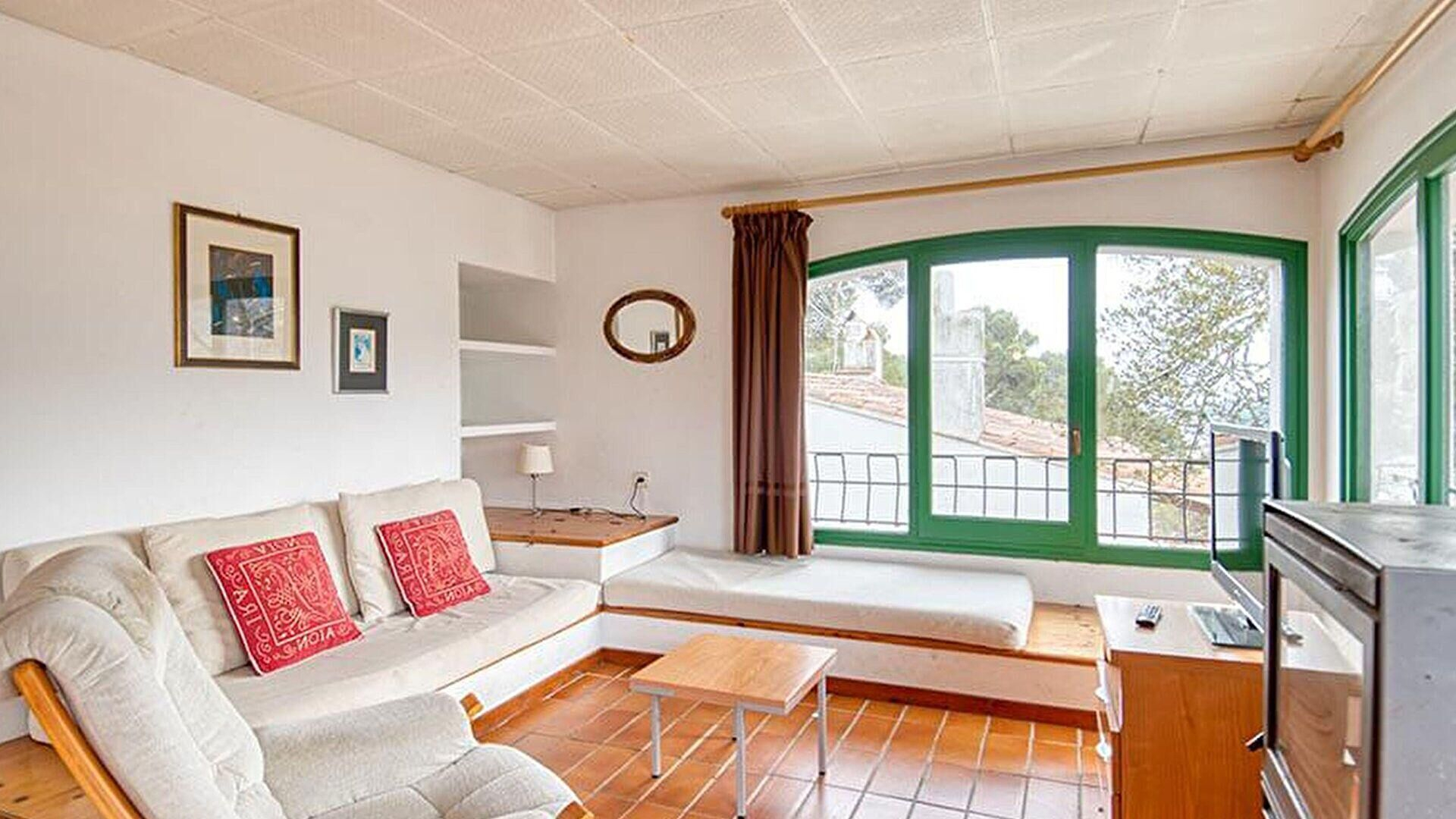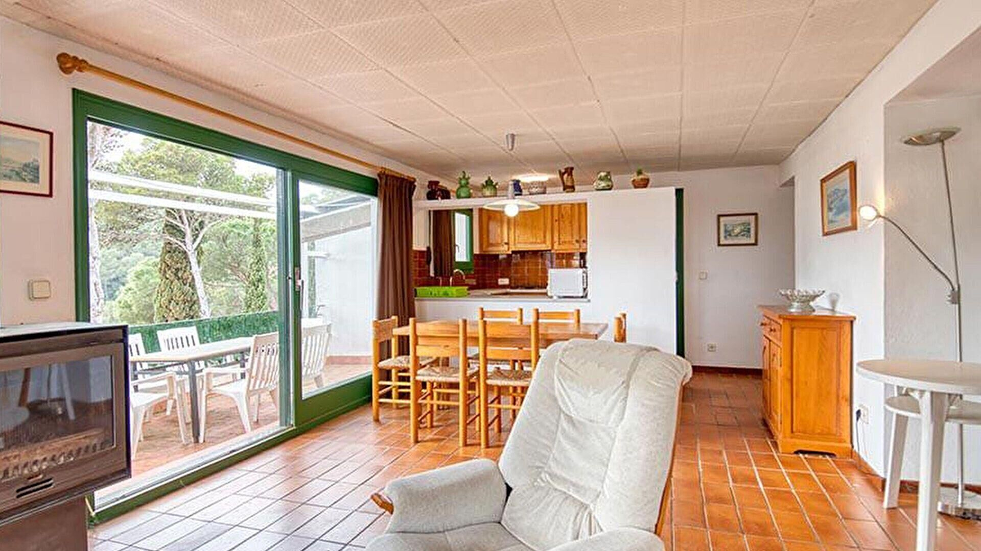 - Comedor-estar con 1 sofá cama individual, chimenea, televisor y salida a la terraza.
