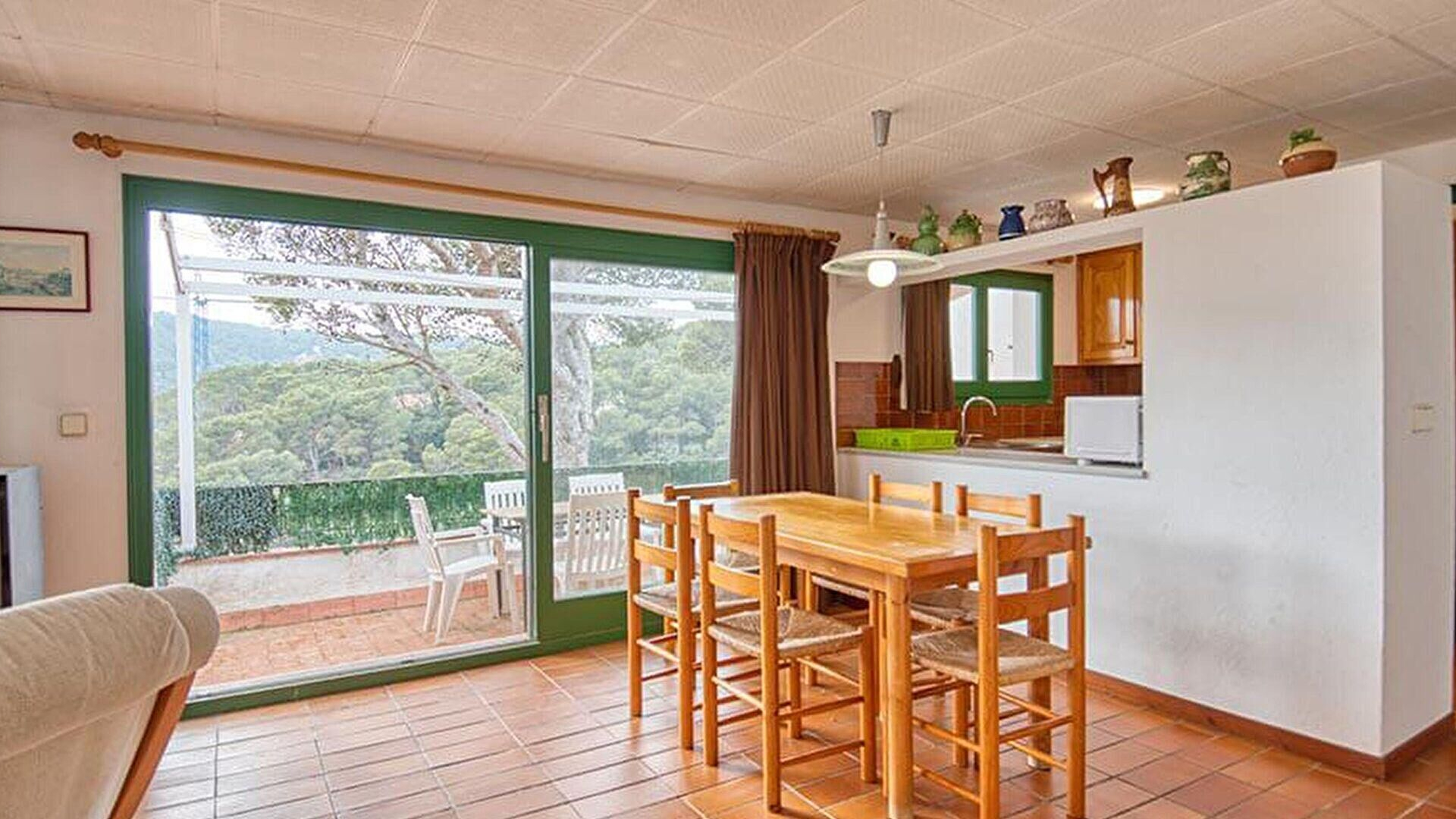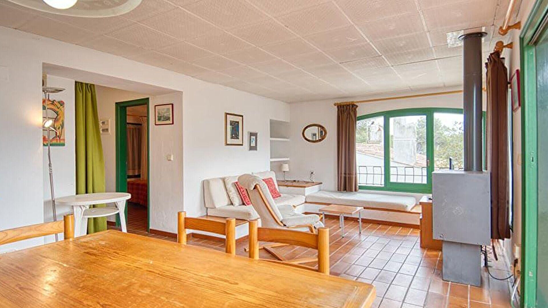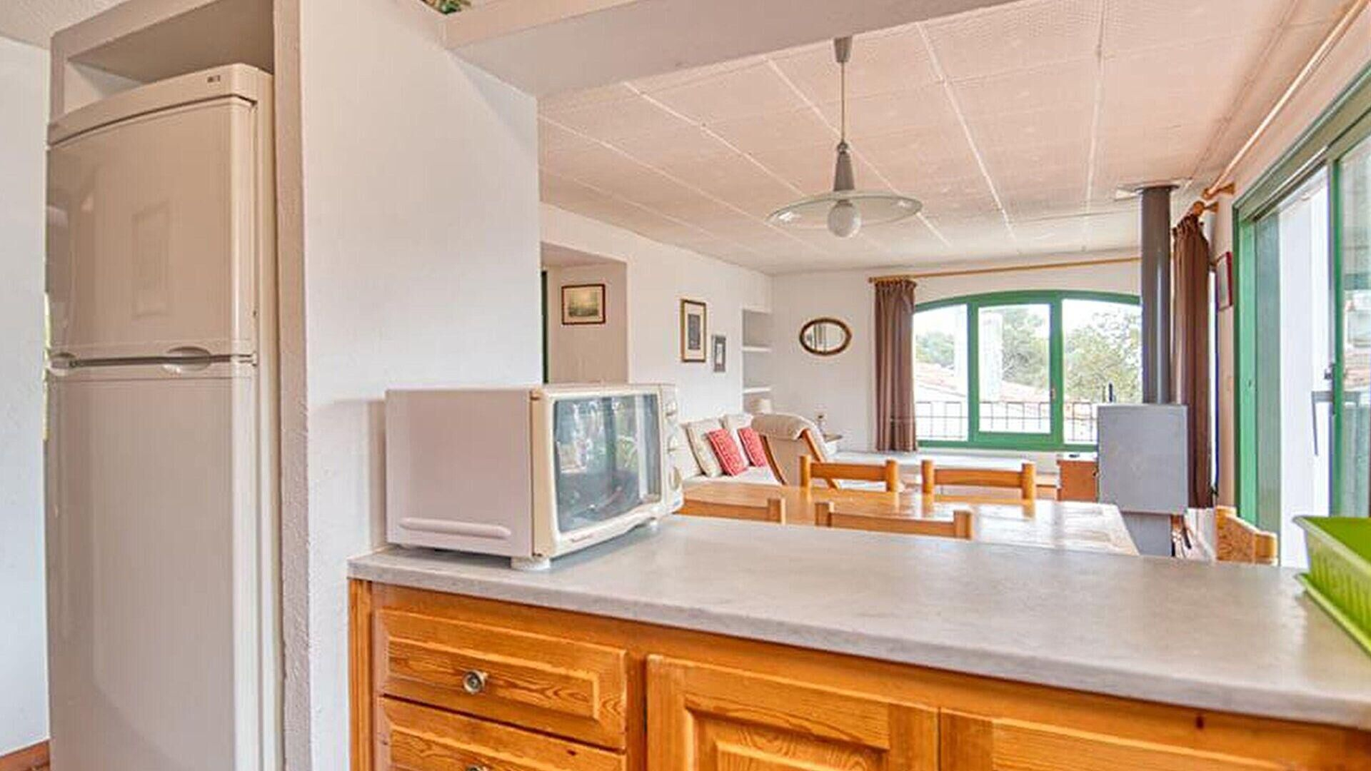 - Comedor-estar con 1 sofá cama individual, chimenea, televisor y salida a la terraza.