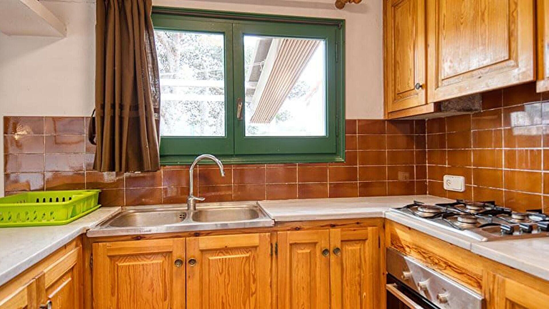 - Cocina americana con encimera a gas, horno, microondas y combi.