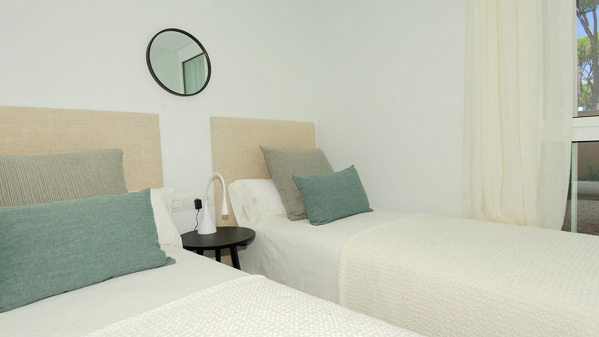 " Our apartment was really lovely – well designed and very comfortable and It was so helpful having parking too. The patio with the huge corner sofa and dining area were great, and we stayed in no. 1 so had an extra little garden at the side of the building. The view of the trees and the little wooded area to the left of the building was beautiful and the pool was lovely too – it was just strange that there were no sun loungers or chairs there. Overall it was such a great place to stay as it was perfectly located close enough to the shops, restaurants and beach, but not so close that it was noisy. We’d definitely love to come back!"
