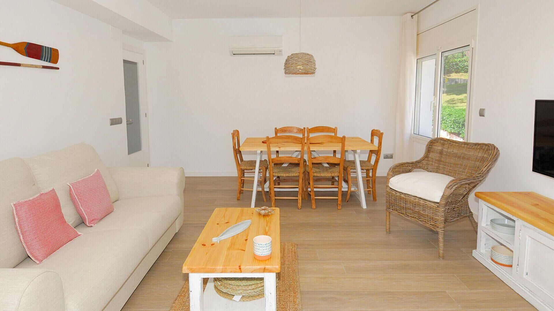 - Comedor-estar con 1 sofá cama de matrimonio, aire acondicionado frÃo y caliente, televisor y salida al balcón.