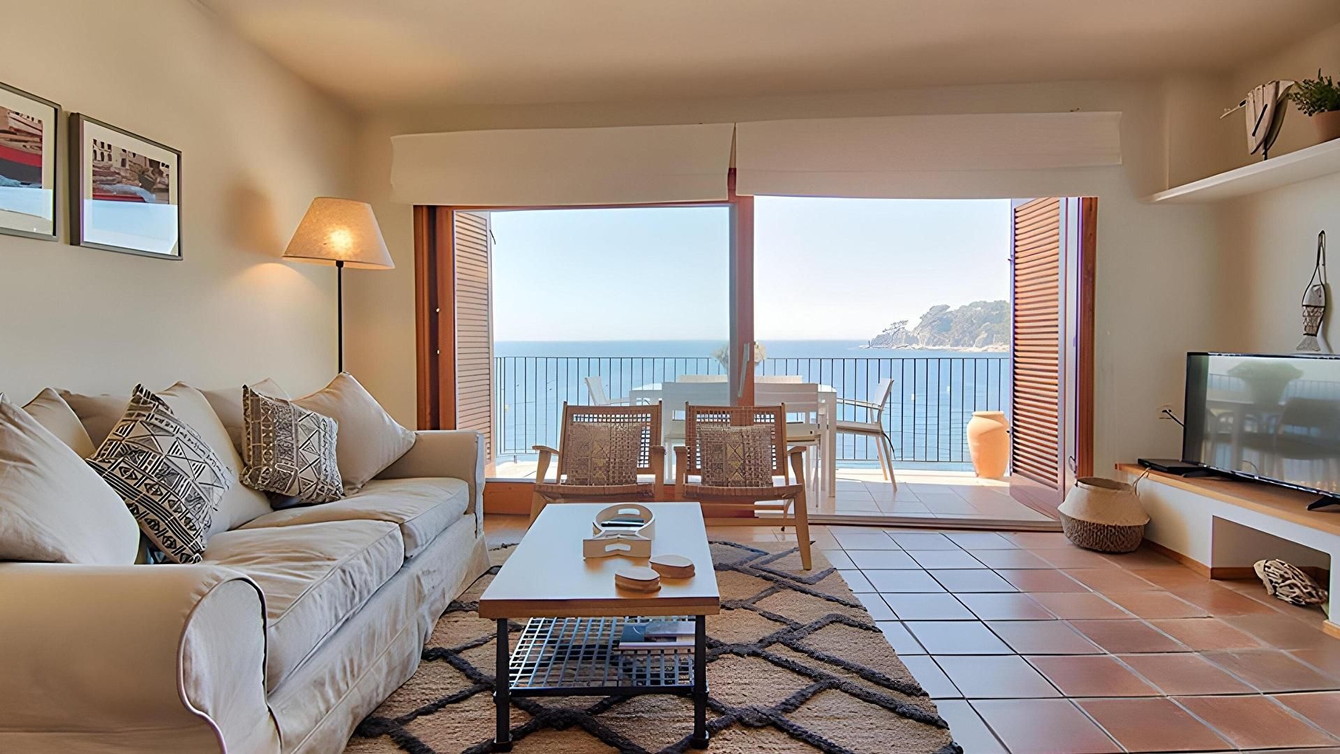 - Comedor-estar con chimenea, televisor, aire acondicionado frÃo y caliente con termostato independiente, salida a la terraza y vistas al mar.