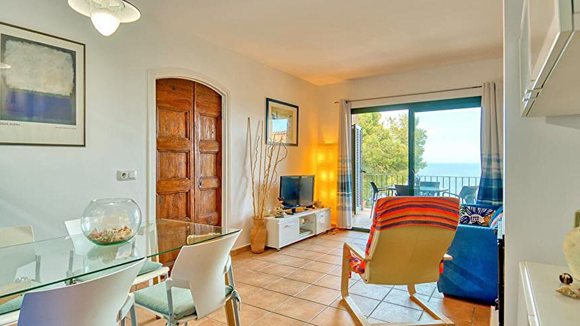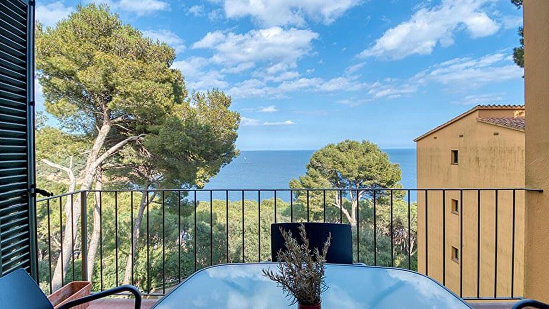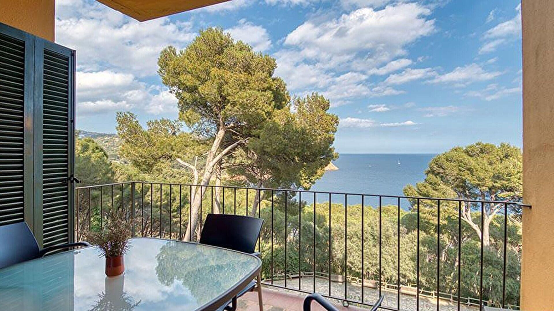 Encantador apartamento con piscina comunitaria en segunda línea con vistas al mar en Tamariu