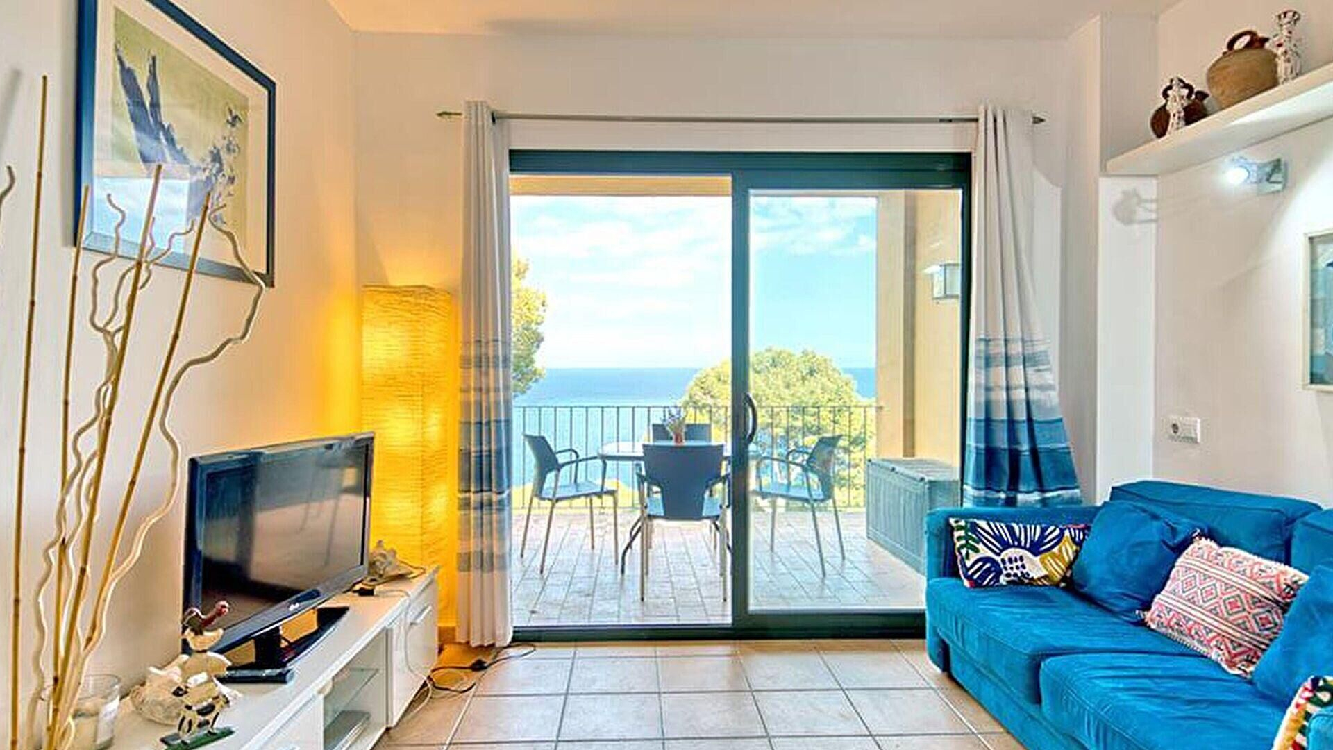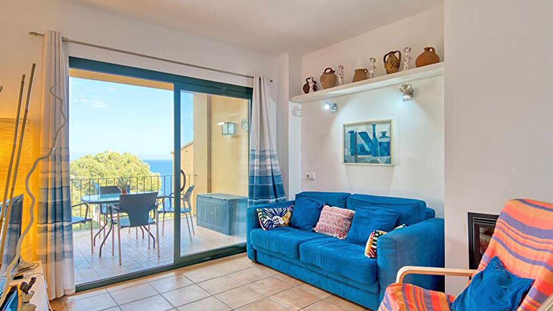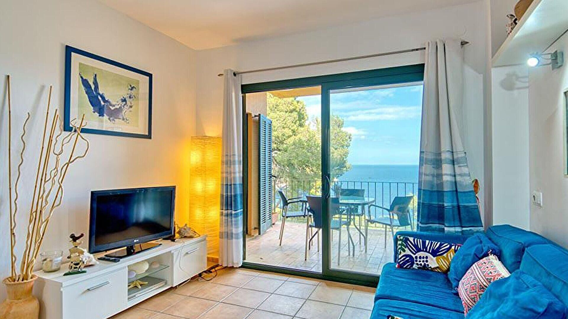 Encantador apartamento con piscina comunitaria en segunda línea con vistas al mar en Tamariu