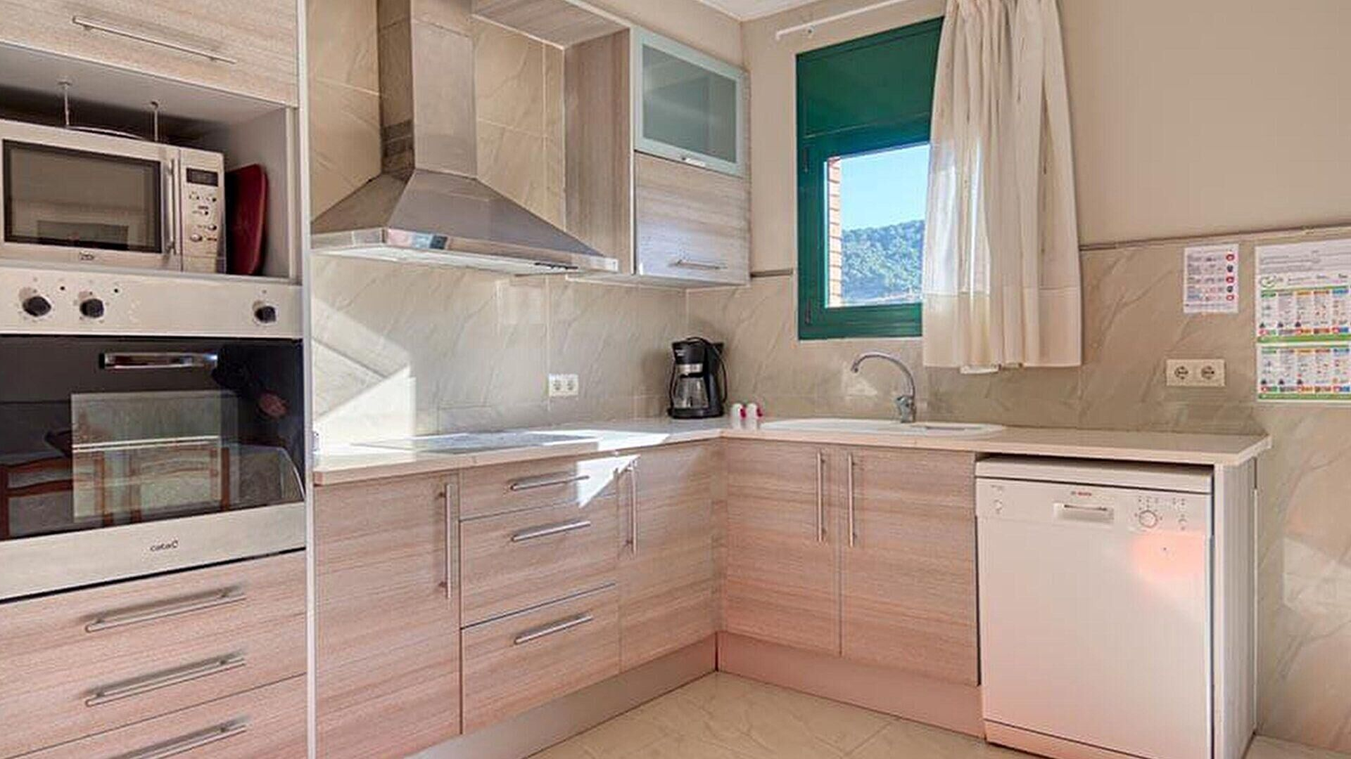Placa de cocció vitroceràmica, llar de foc i aire condicionat fred i calent al menjador.