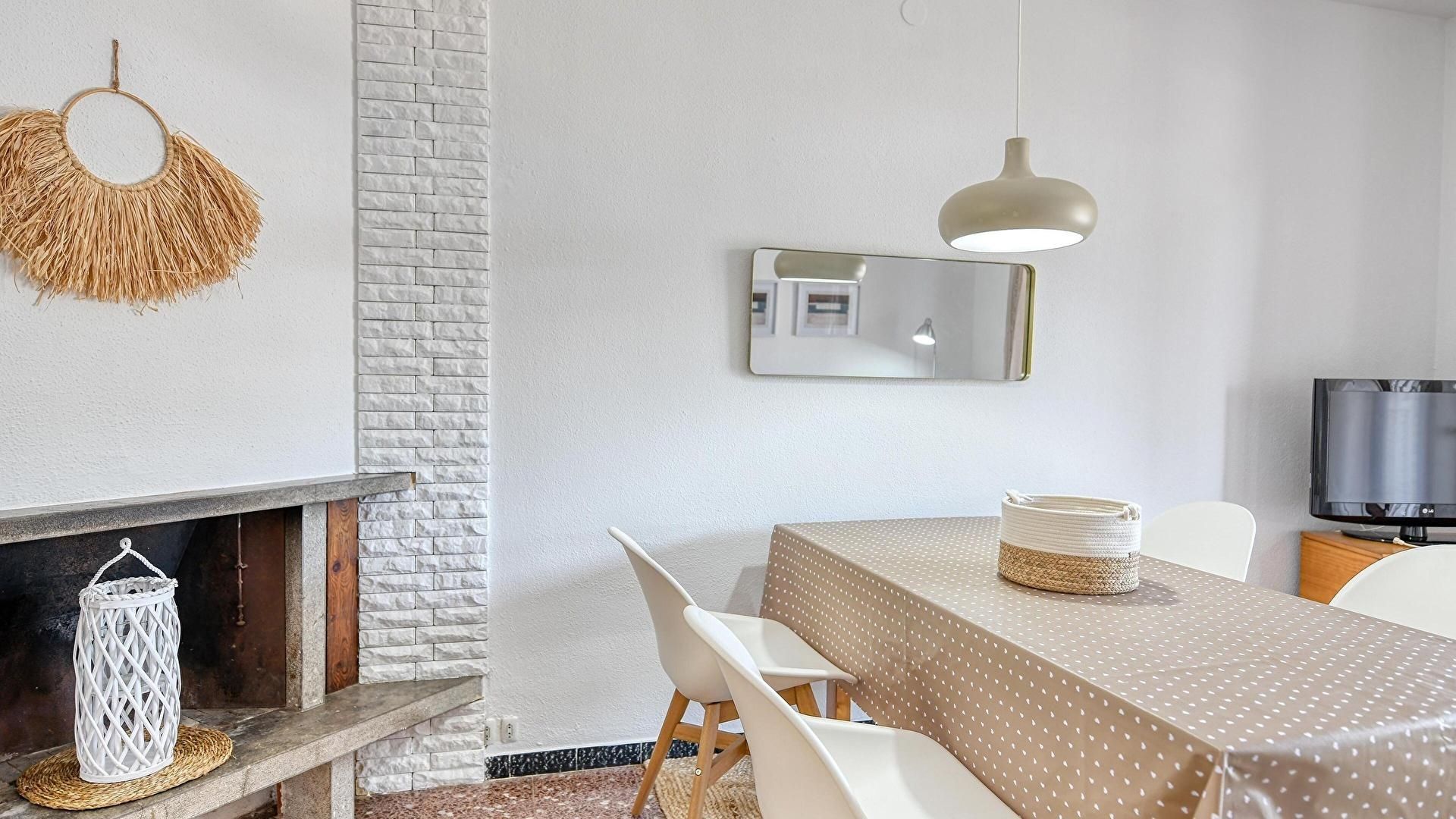 Terrassa, menjador-estar, cuina oberta, 3 dormitoris i 2 banys amb dutxa.