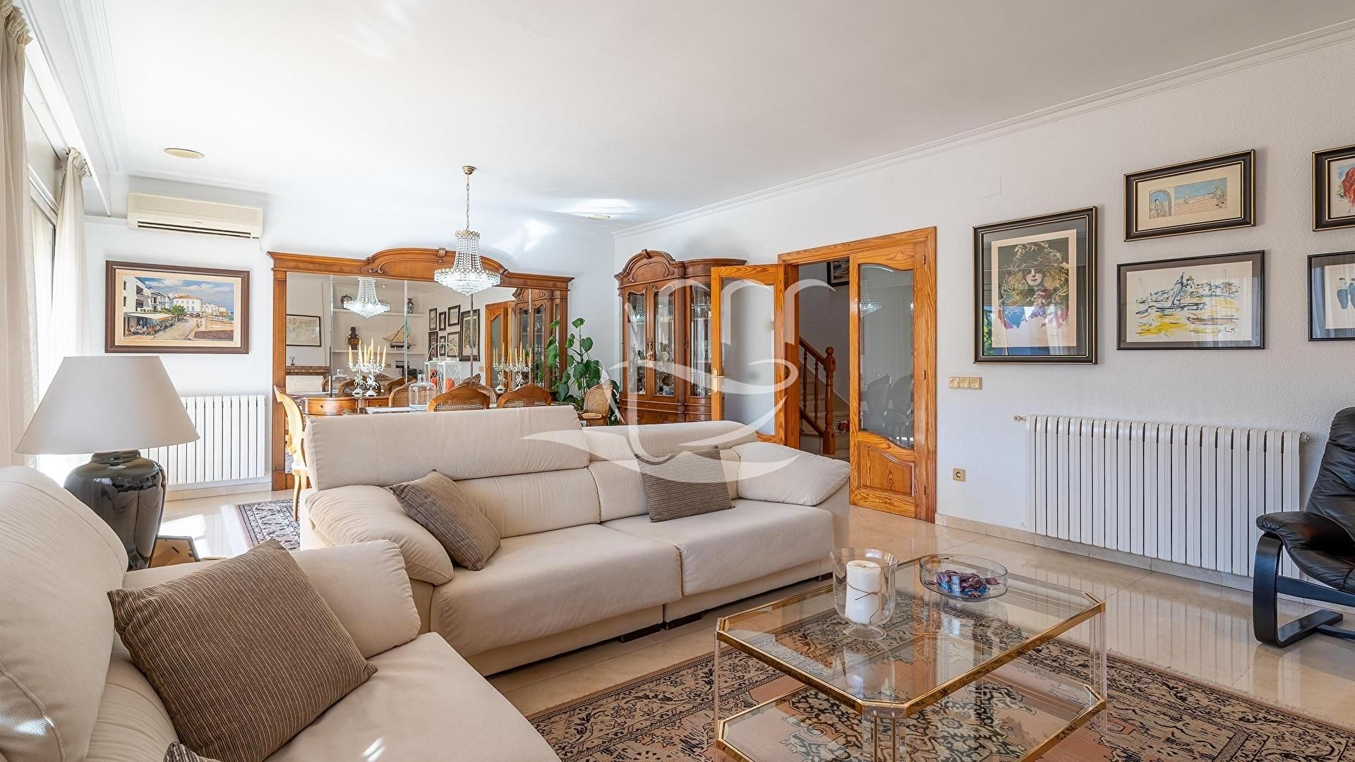 Jardí, 2 terrasses, menjador-estar, 2 cuines office, 4 dormitoris, 2 banys amb banyera, 1 bany amb dutxa, 1 lavabo i vàter, vestidor, garatge i sala de màquines.