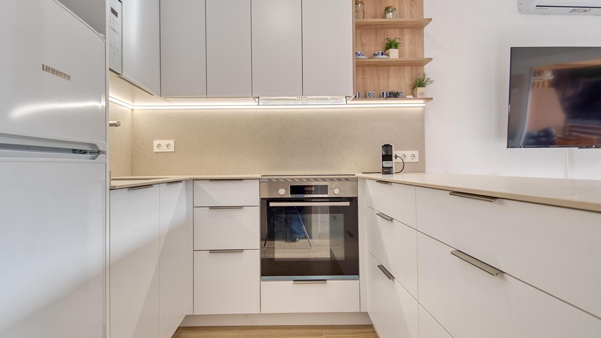 - Cuina oberta amb sortida a la terrassa i forn.