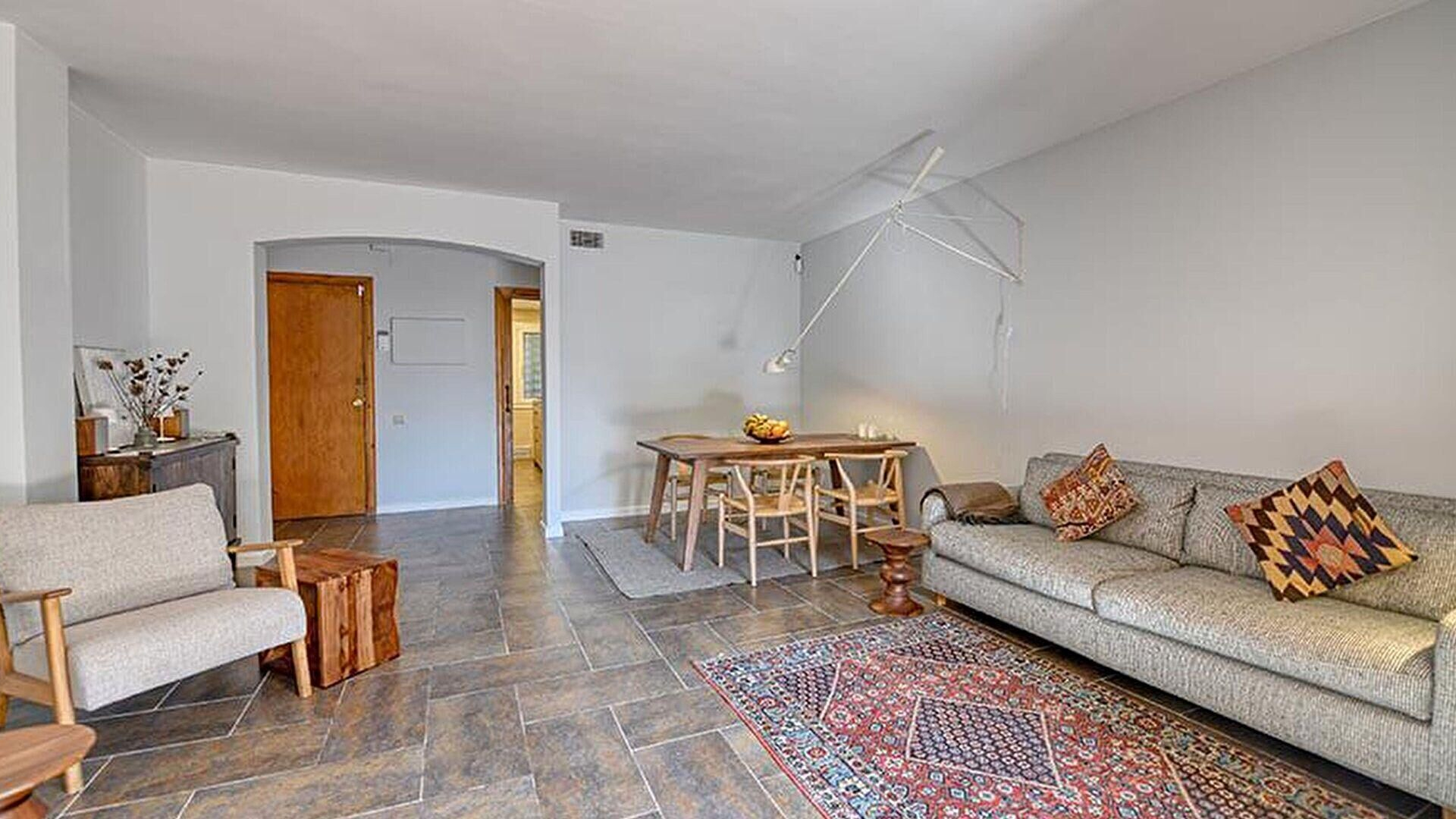 Wohnzimmer, Küche, 4 Schlafzimmer, 1 Bad mit Badewanne und 2 Bäder mit Dusche.