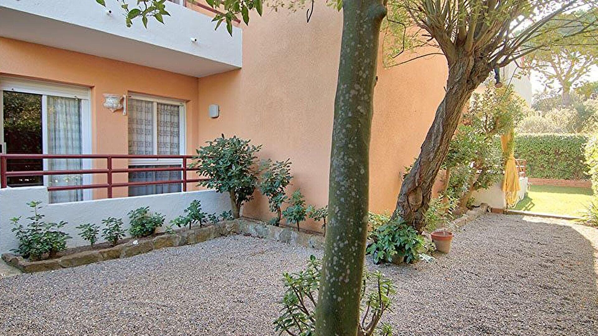 Privater Garten, Gemeinschaftsgarten, Gemeinschaftspool, Tennisplatz und Abstellraum.