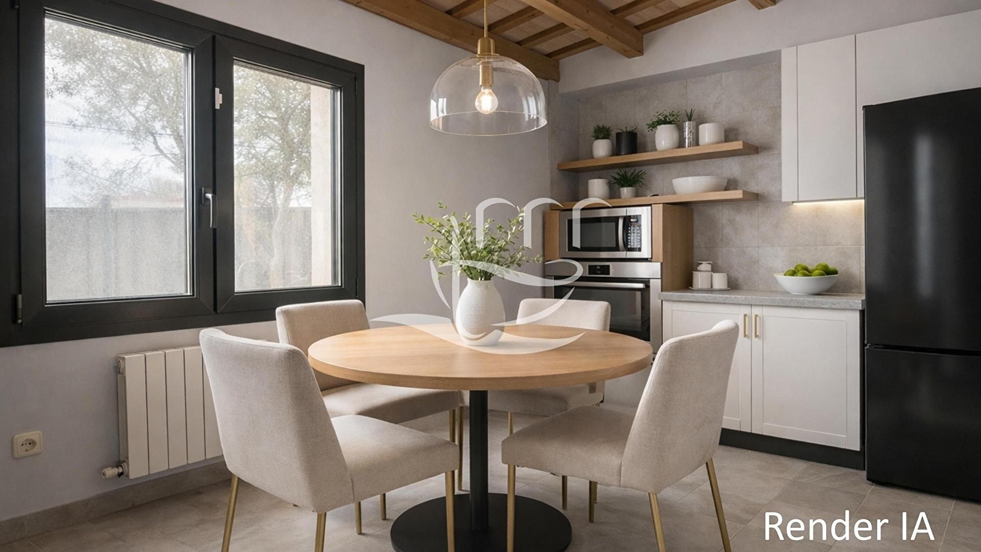 - Wohnzimmer-esszimmer mit kamin und ausgang zur veranda.