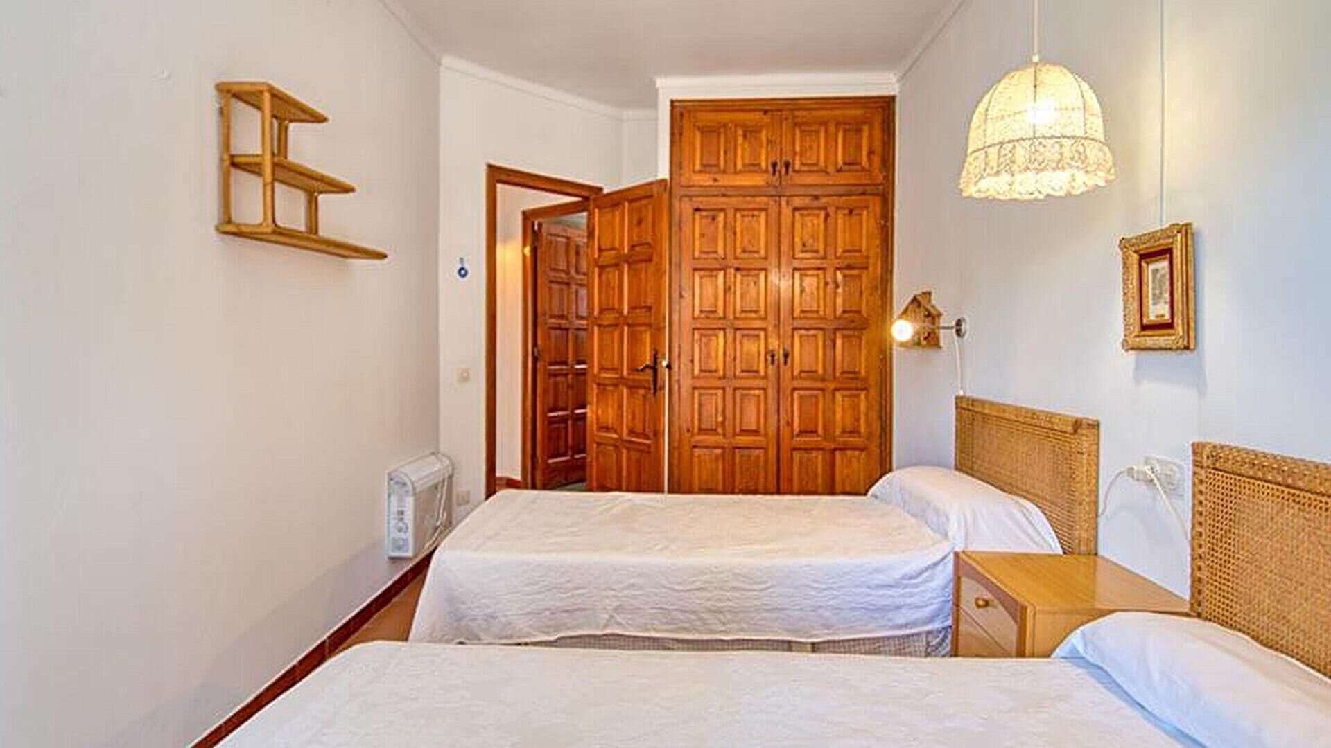 2 schlafzimmer mit 1 doppelbett, elektrischer heizkörper und ausgang zum balkon.