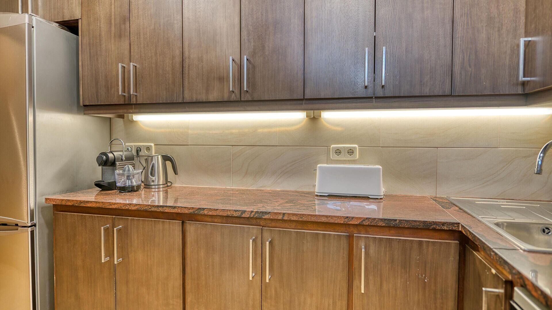 Calefacció central, planxa i cafetera.