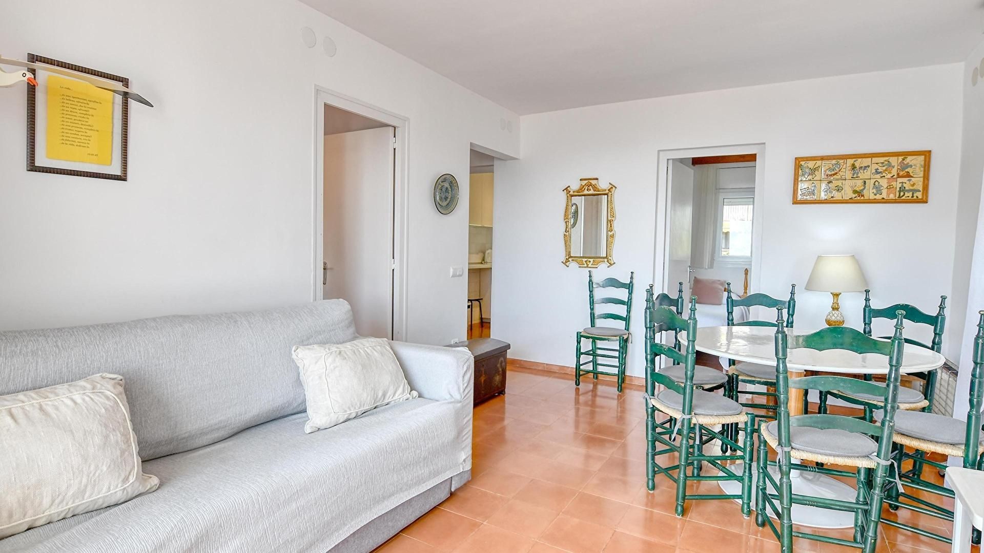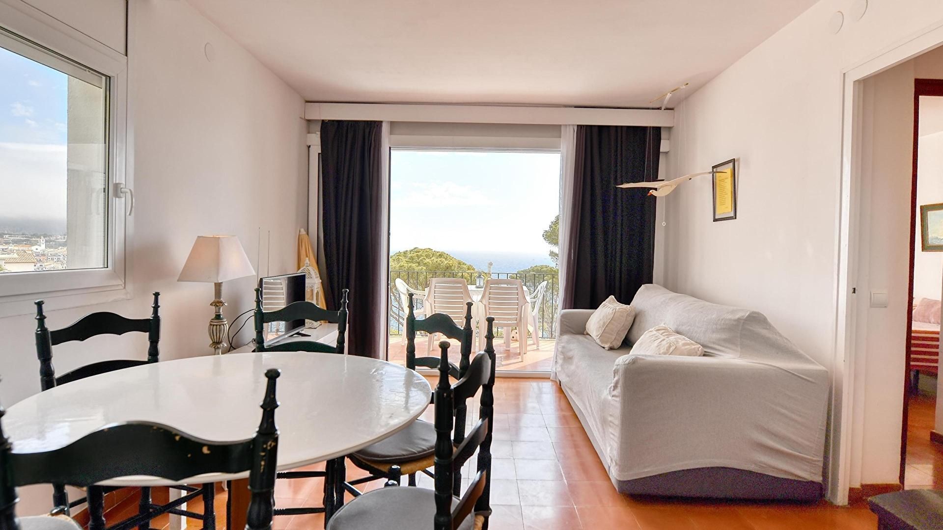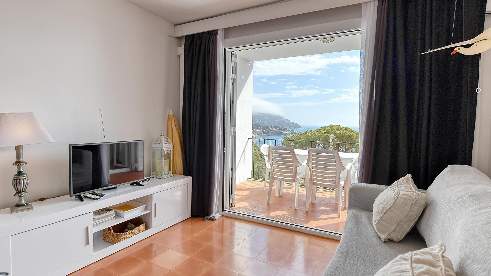- Menjador-estar, televisor, vistes al mar i sortida a la terrassa.