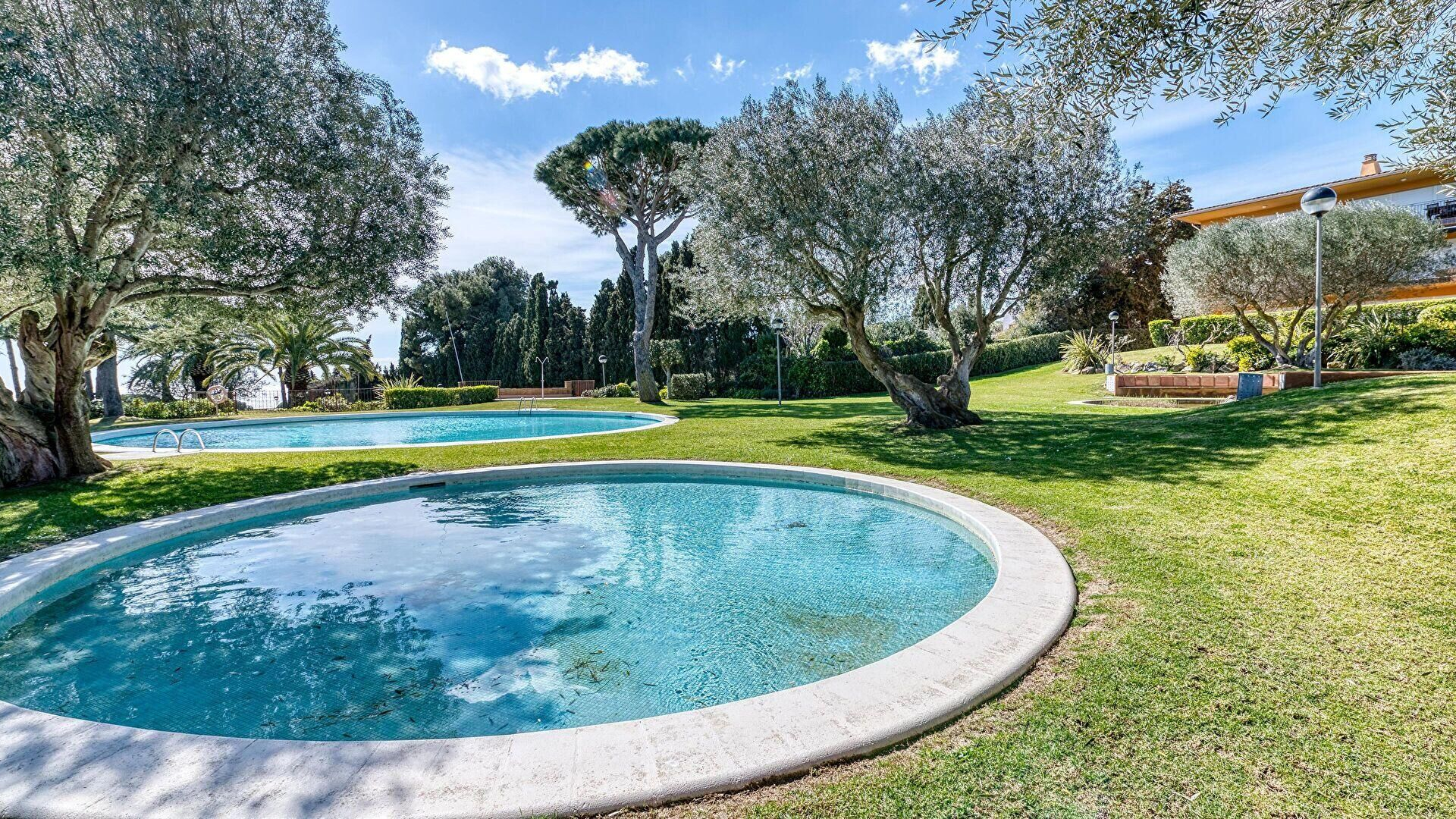 Jardà comunitari, parc infantil comunitari, piscina comunità ria i mobles de terrassa.