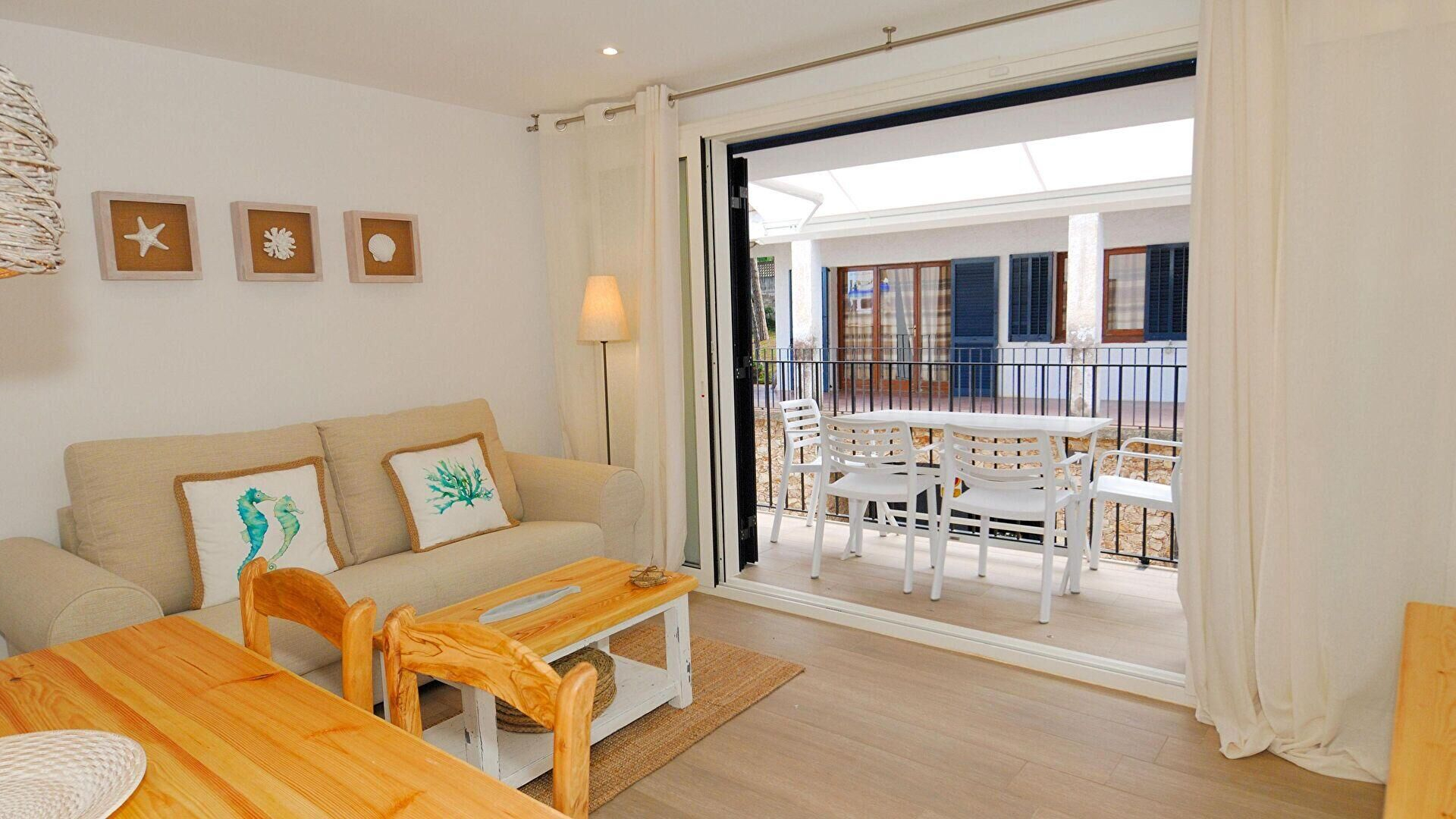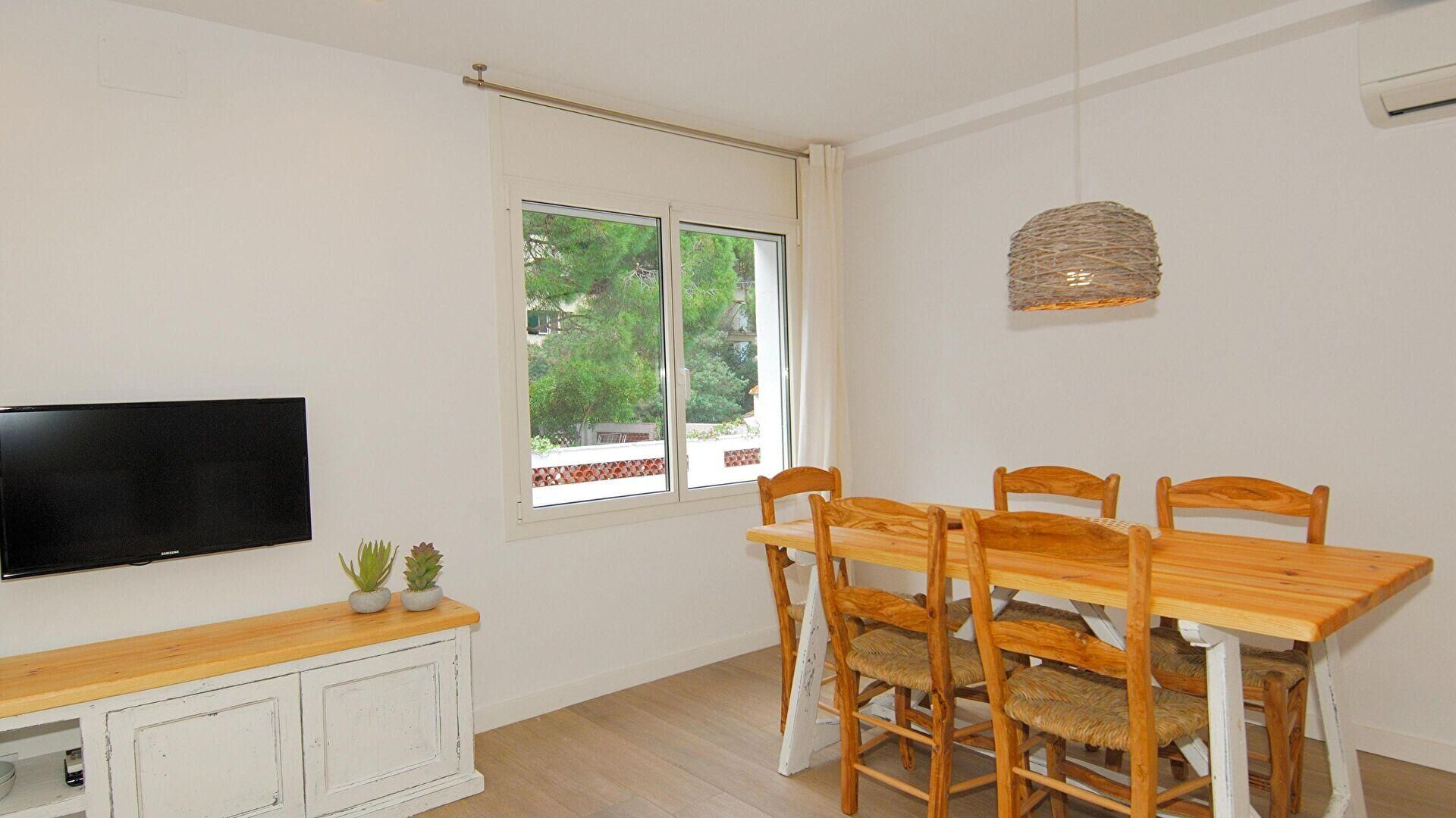 - Menjador-estar amb 1 sofà llit de matrimoni, televisor, sortida al balcó i aire condicionat fred i calent.