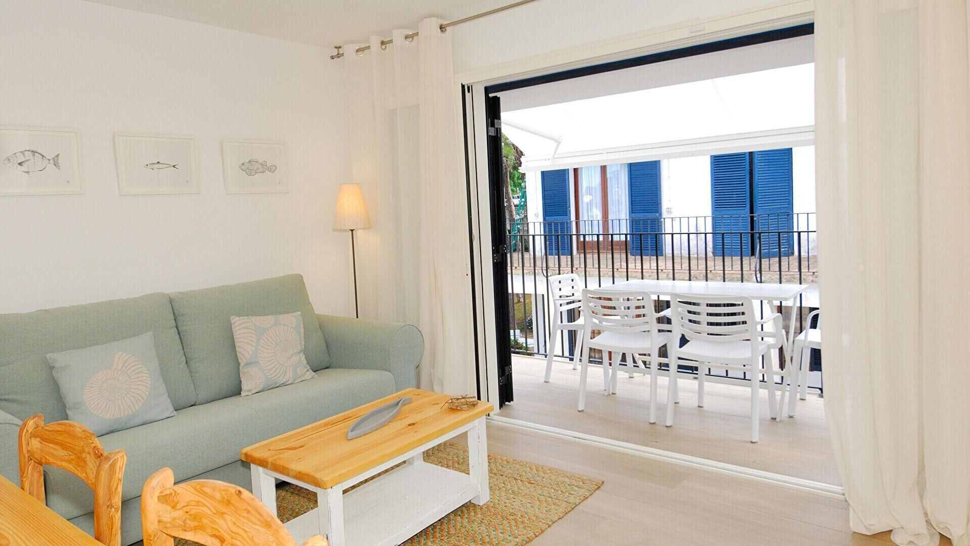 - Menjador-estar amb 1 sofà llit de matrimoni, televisor, aire condicionat fred i calent i sortida al balcó.