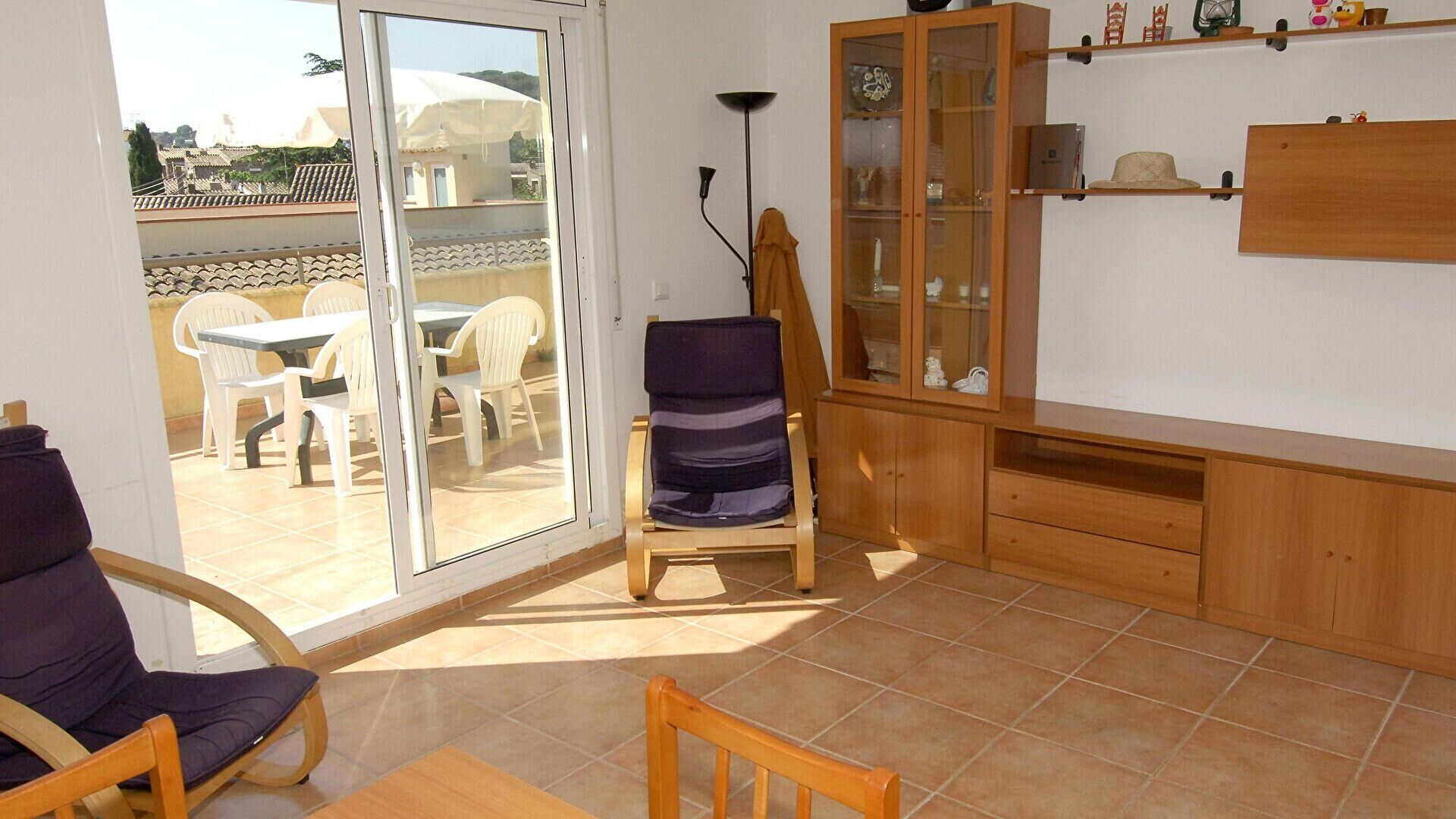 - Salle de séjour et sortie sur la terrasse.