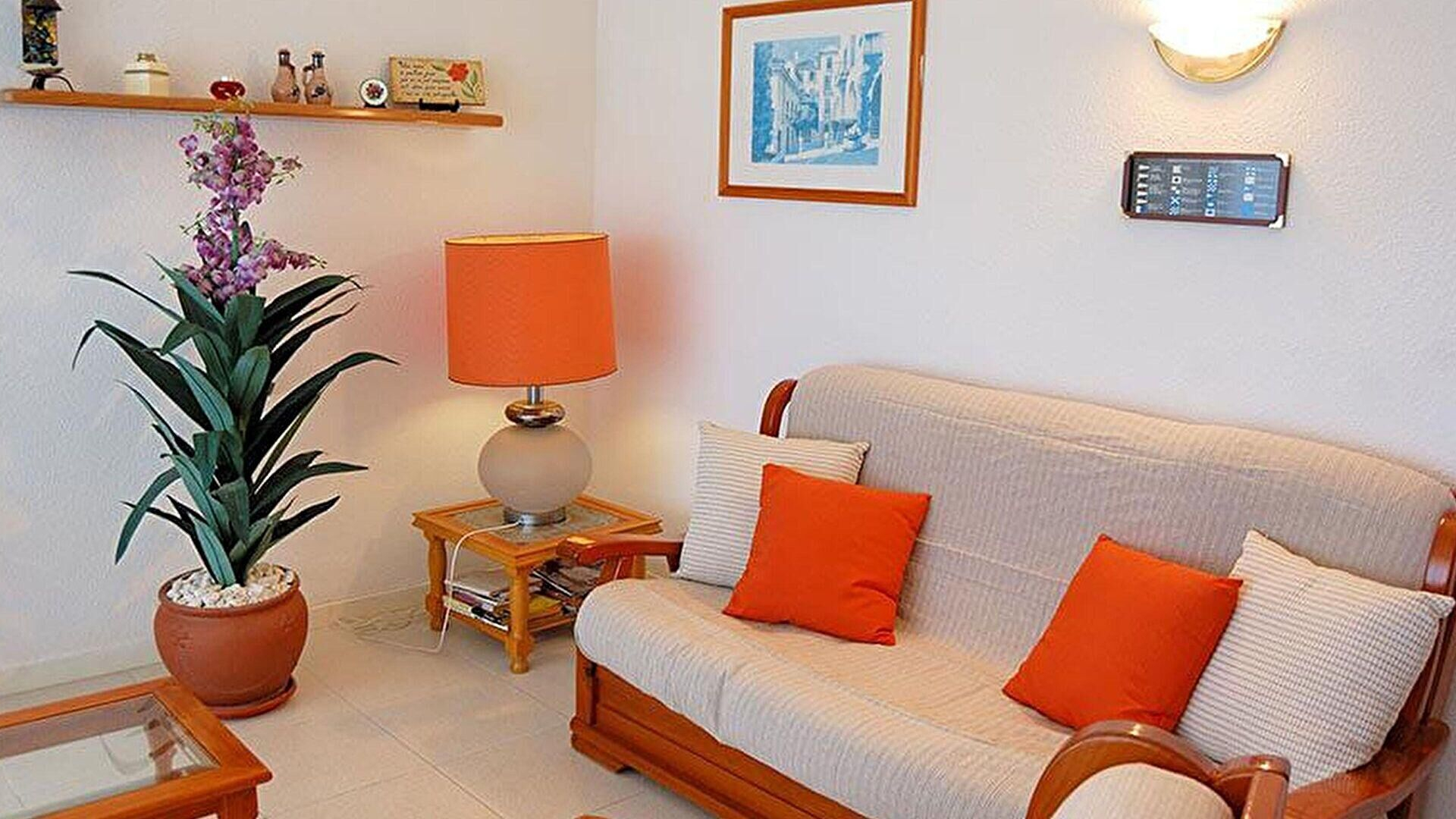 - Salle de séjour avec téléviseur et sortie sur la terrasse.