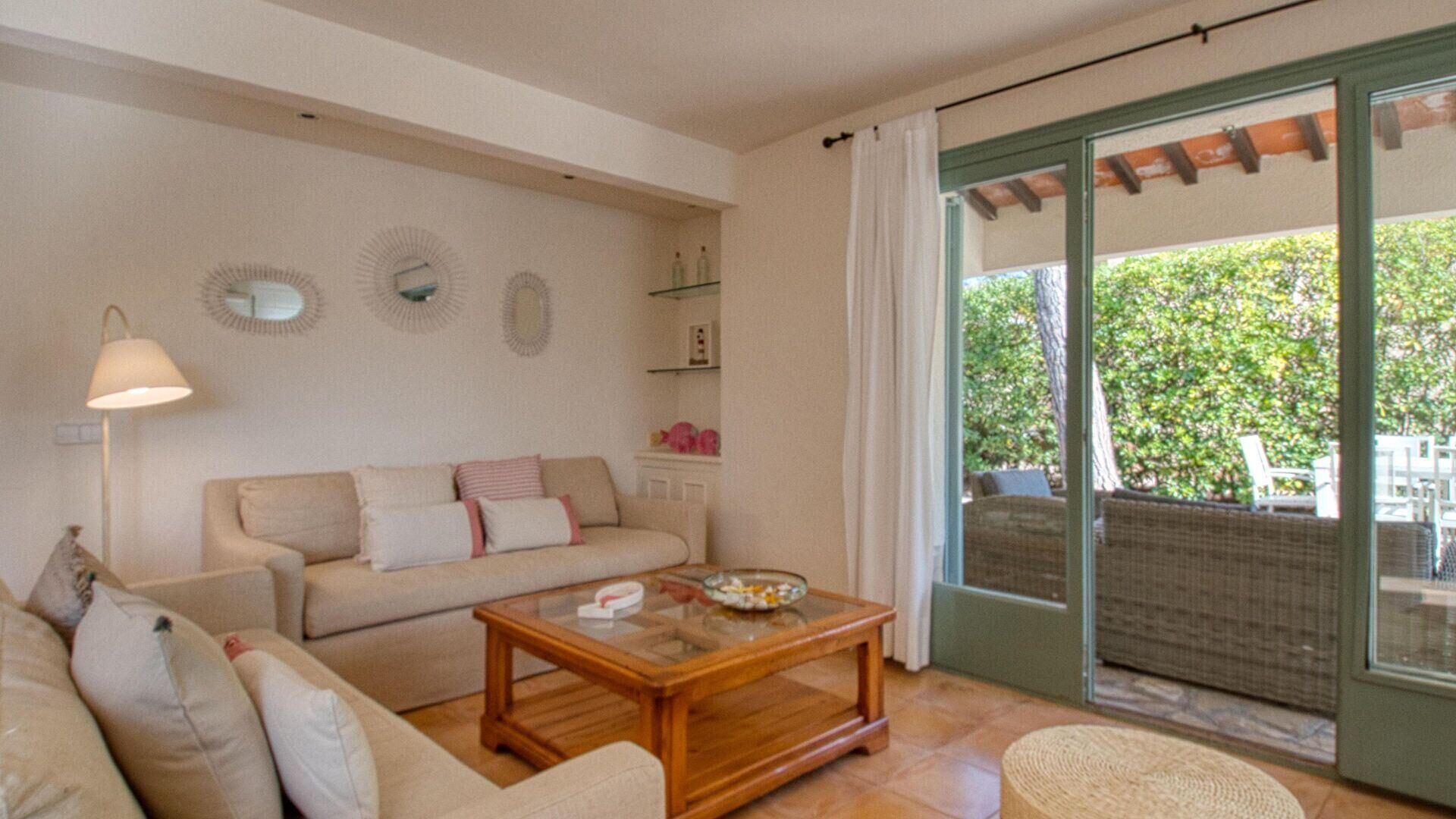 - Salle de séjour, cheminée, air conditionnée froid/chaud avec thermostat indépendant, téléviseur et sortie sur la terrasse.