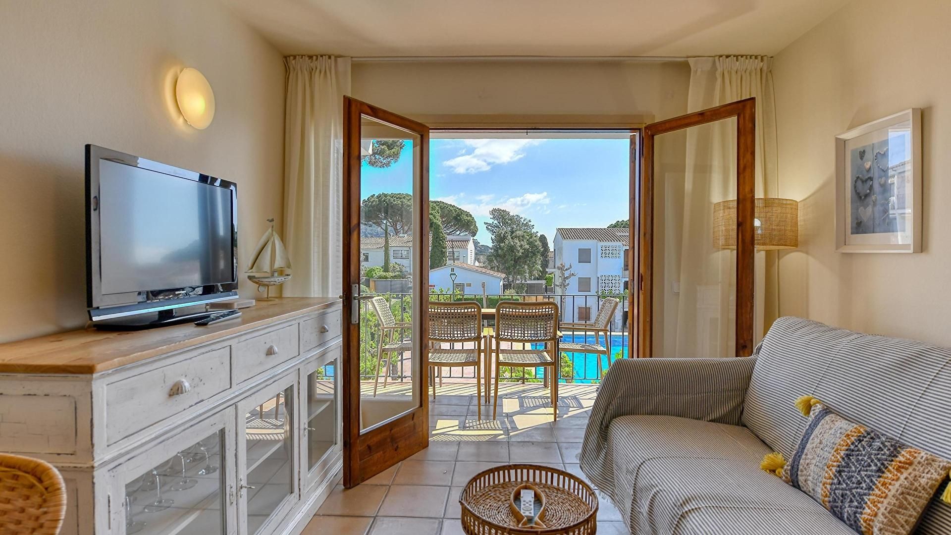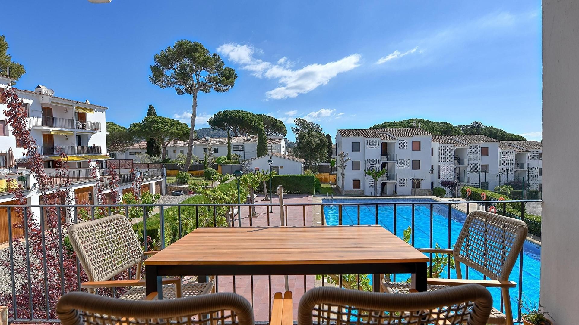 " Apartamento muy bien situado con piscina comunitaria y balcón de tamaño muy correcto. El piso es pequeño pero está bien para 4 personas. Lo recomiendo."