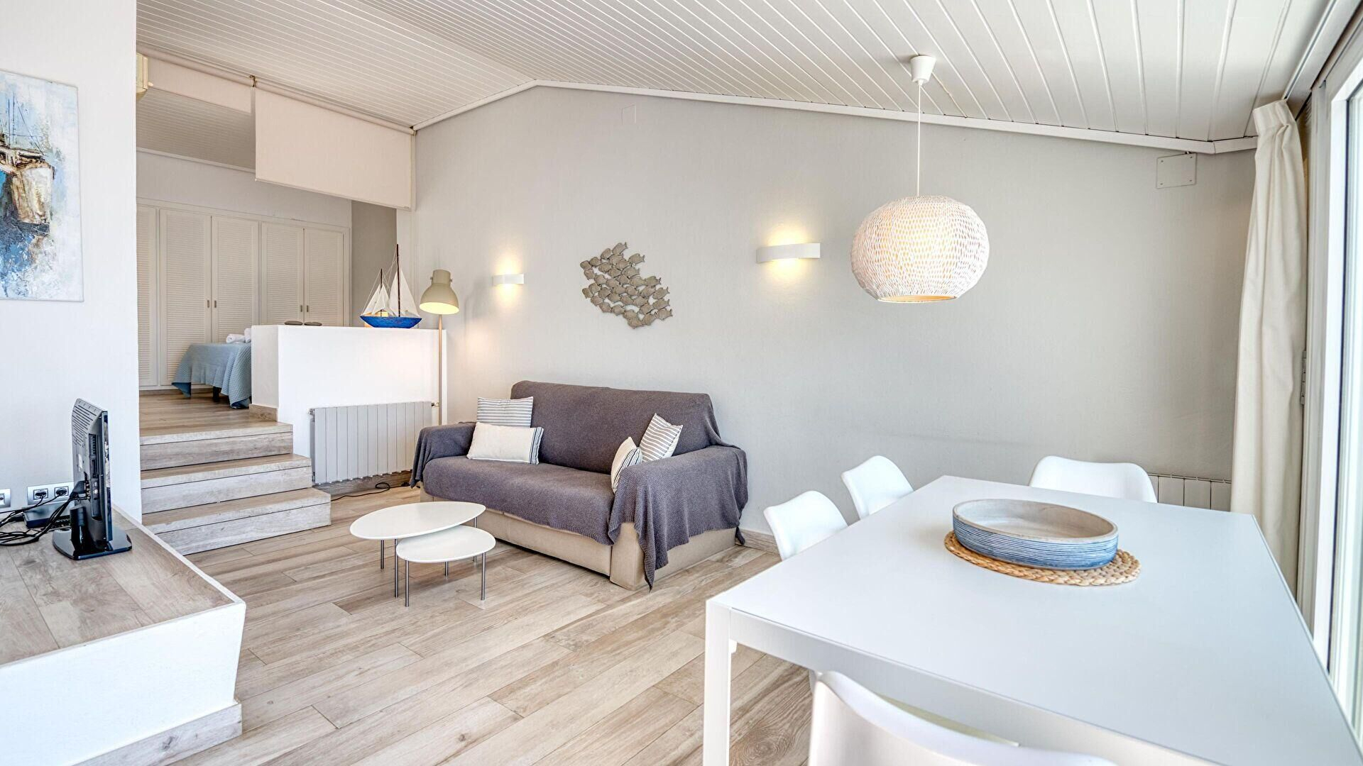 " Our favorite place to stay in our favorite place on the Costa Brava! We’ve stayed in six beach view accommodations in Calella over the years, and this one is our favorite! The view from both the terrace and living area is stunning, and there’s nothing like hearing the waves while drifting off to sleep. The layout with the slightly elevated bedroom with lots of closets is inspired. And the decor and books makes it feel comfortable. Thank you!"