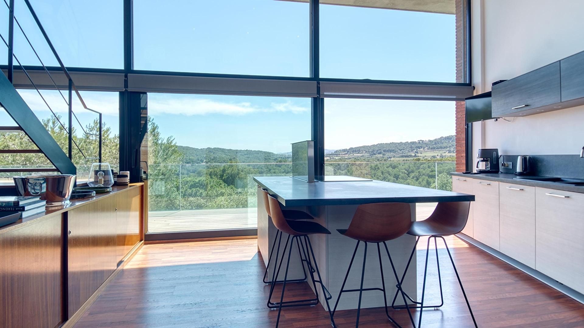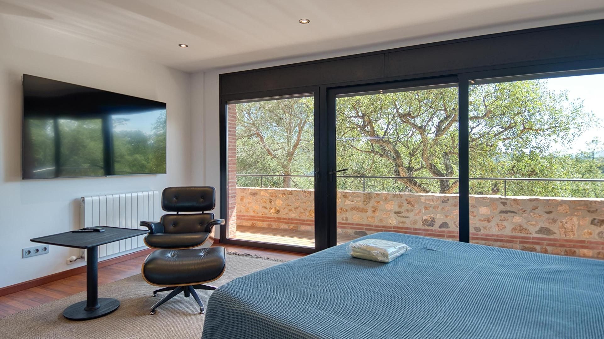 " La casa nos sorprendió muy favorablemente. Teníamos unas expectativas altas y las superó "in vivo", es mejor de lo que parece en fotos. La piscina en la azotea es profunda incluso demasiado y aunque estrecha es bastante larga, la disfrutamos todos los días sin excepción, sobre todo mis hijos (16 y 18 años). El salón comedor-cocina es perfecto para hacer la vida diaria y además muy práctico el balcón grande y alargado para poder comer pero sobre todo cenar muy agradablemente, inmerso en el precioso bosque donde esta situado la villa. Además por la parte izquierda incluso con vistas al mar. La planta segunda tiene todos los dormitorios (4) y sobre todo el principal esta genial, a pesar de no tener AC (solo en la zona de comedor) se estaba bastante agradable en la época que nosotros fuimos (23-30 agosto/2021) tan solo abriendo ligeramente ventana con la persiana semicerrada. Por último la zona de la planta más baja tenía una zona de barbacoa interior pero con amplio ventanal que también nos pareció muy práctica y que utilizamos varias veces. Como pegas desde luego que es una casa donde hay que subir y bajar escaleras y por lo tanto no es recomendable para gente con problemas de movilidad, para nosotros a día de hoy no es un problema (59 y 54 años) pero aun así sería de agradecer que se contemplara por parte de los dueños algún ascensor o montacargas sobre todo para bajar y subir las maletas el primero y últimos días que si es realmente incómodo, con ello ganaría muchos quilates. El otro inconveniente es el tema del parking, que los dueños no dejan utilizar el interior por problemas varios con la puerta automática que han tenido con varios inquilinos según nos comentaron, pero de todas maneras la rampa de acceso que rodea la casa es tremendamente angosta y difícil para un vehículo grande como el nuestro, así que nosotros lo dejábamos dentro del rellano superior tras cogerle el truquillo de cómo entrar. Pero hay que decir que al menos para nosotros que nos estimamos el vehículo y que obviamente es nuestro y no de alquiler si que creemos que se debe ofrecer la posibilidad de ponerlo a cubierto en condiciones por si tenemos una tormenta importante con posibilidad de granizo. Pero en resumen una semana de vacaciones inolvidable por la casa y por las preciosas calas y pueblos de la costa brava. Repetiremos."