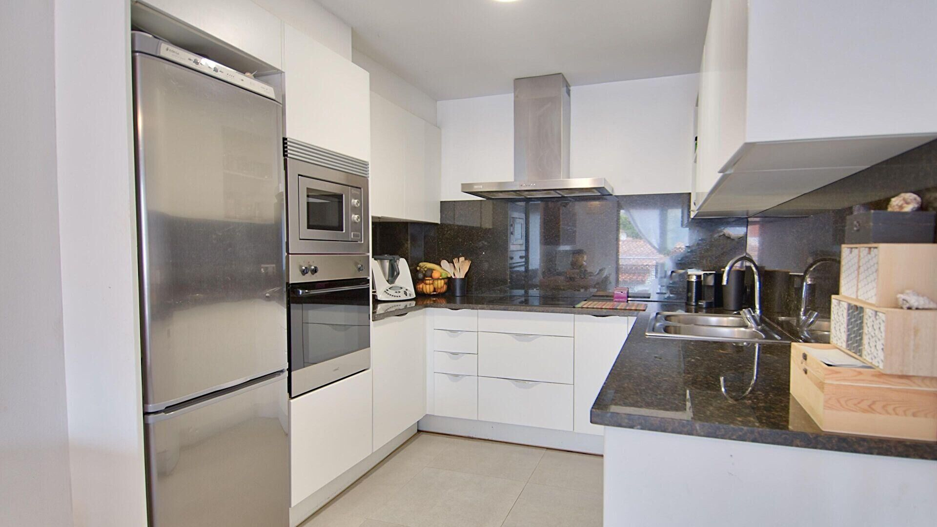 Wohnzimmer-Esszimmer, offene Küche, 2 Schlafzimmer und 2 Bäder mit Dusche.