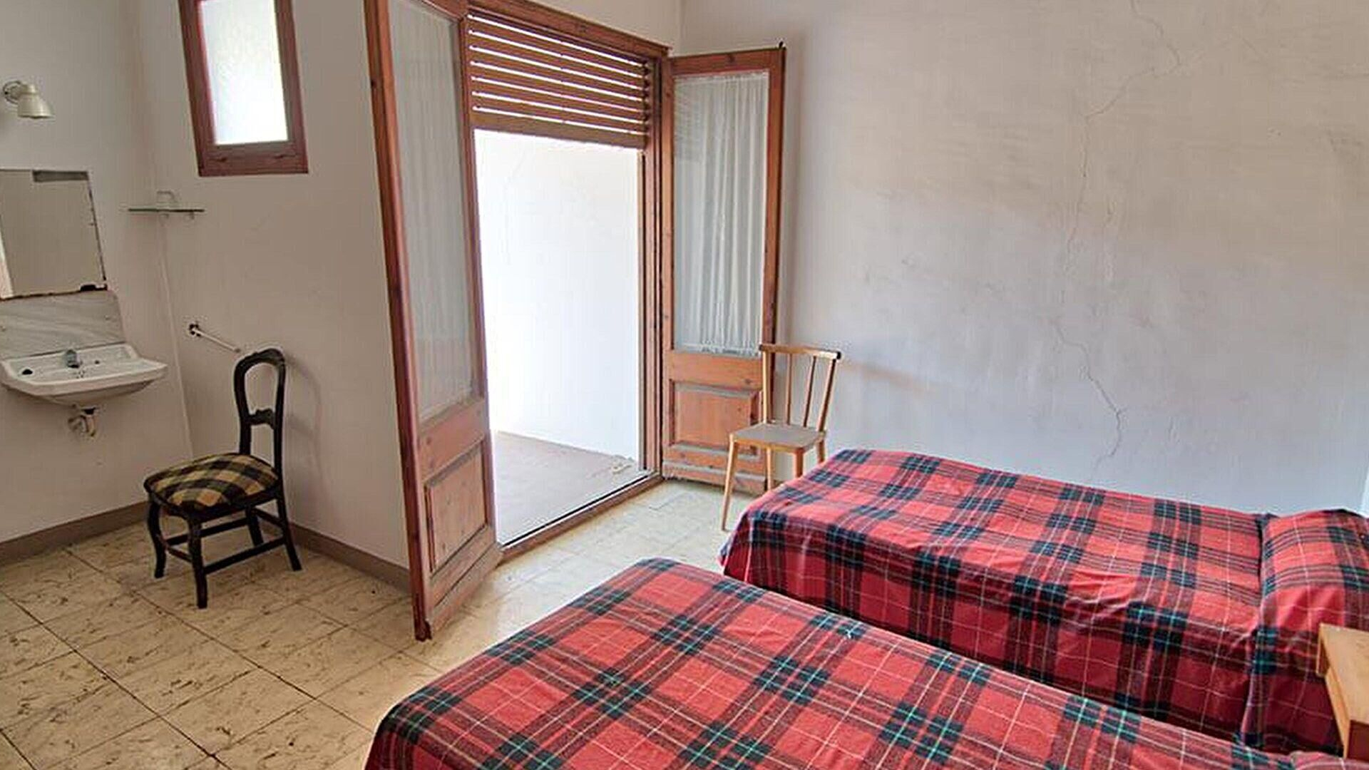 9 schlafzimmer mit 1 doppelbett und waschraum.