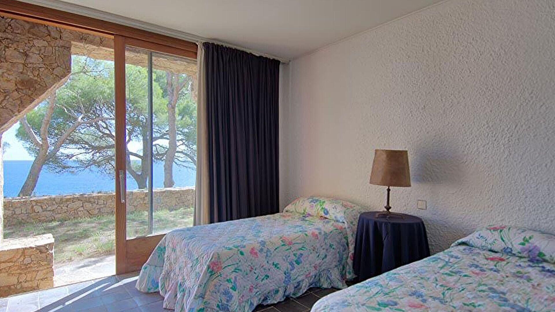 Etage -1- Schlafzimmer mit 1 doppelbett, meerblick, ausgang zum privaten garten und bad mit dusche (en suite).