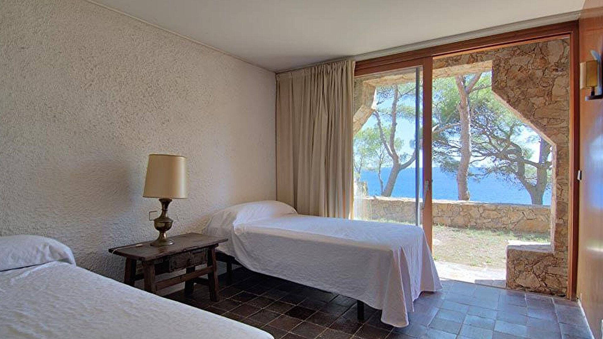 Étage -1- Chambre avec 1 lit double, vue sur la mer, sortie au jardin privé et salle de bain avec douche (en suite).