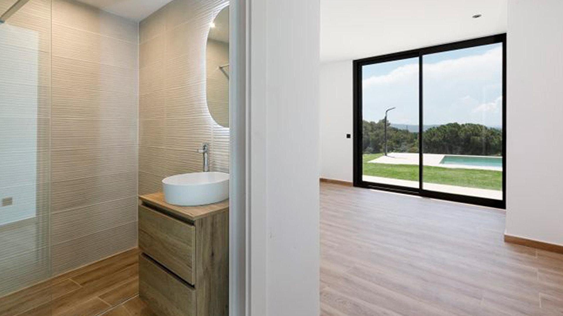 Garden with swimmng pool, terrace, living/dining room, open american style kitchen, 4 bedrooms, 1 bathroom, shower, 1 shower room, 1 wc, store room, garage and boiler room.