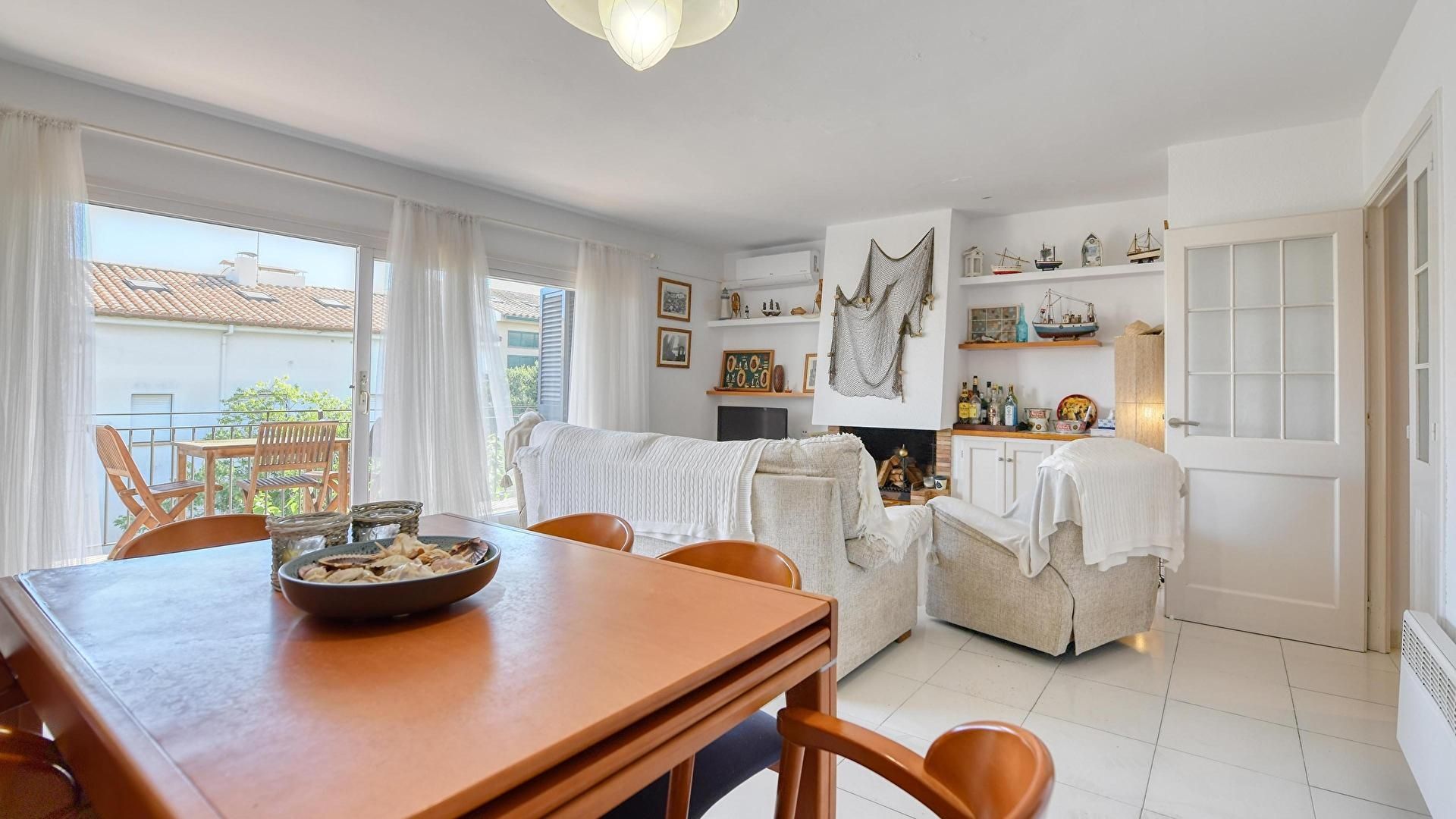 Floor 0- Living/dining room with access to the terrace and fire place.