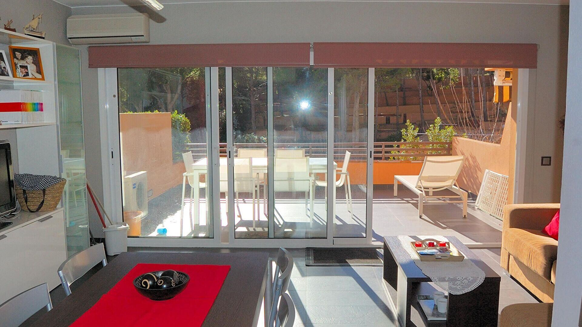 - Living/dining room, access to the terrace and air conditionning and heating unit.