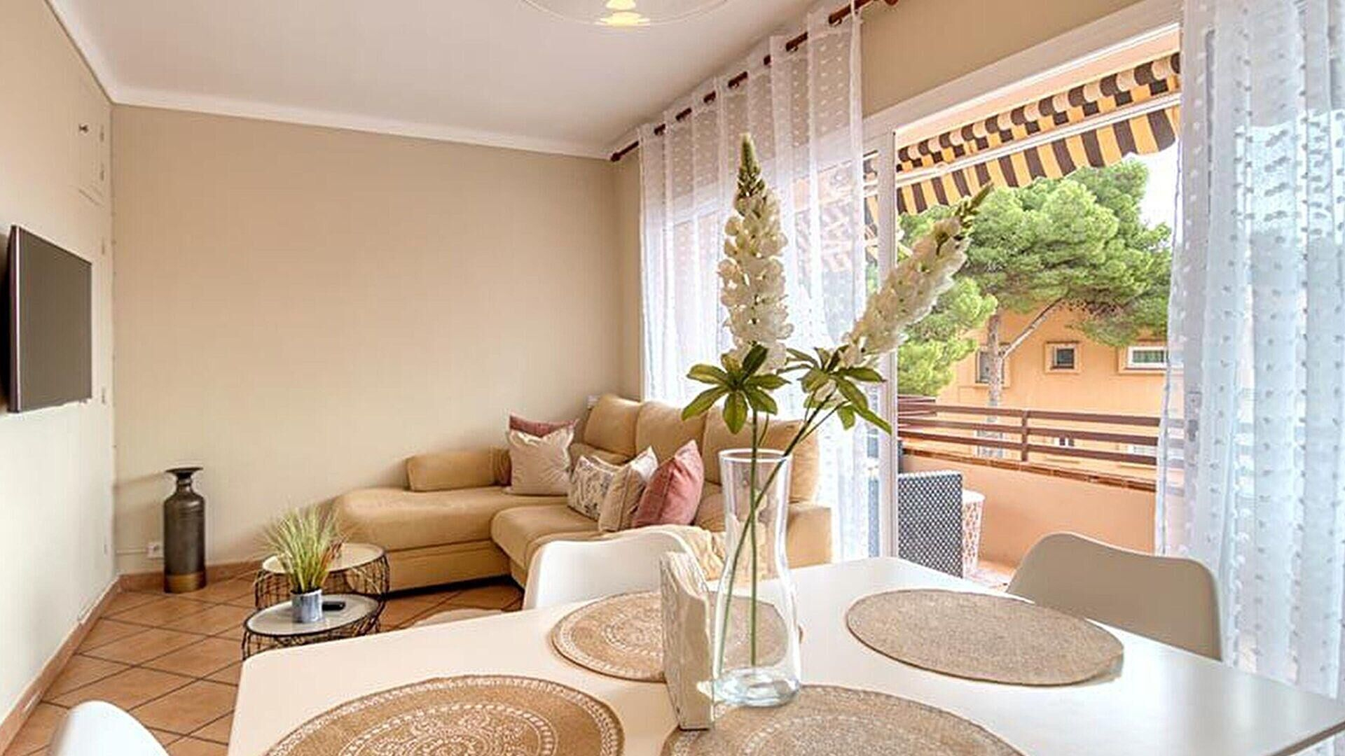 - Living/dining room with sea view and access to the terrace.