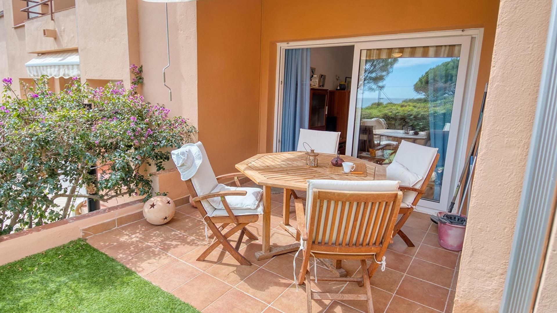 - Terrace with sea view and awning.
