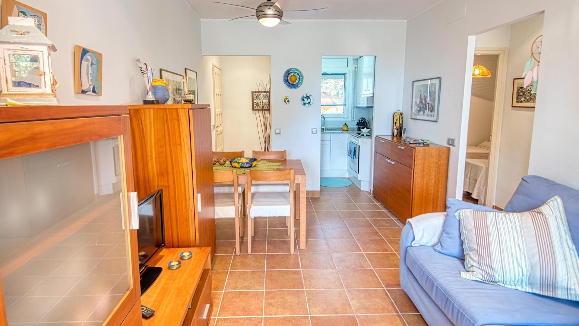 Garden, terrace, living/dining room, open american style kitchen, 2 bedrooms and 1 shower room.