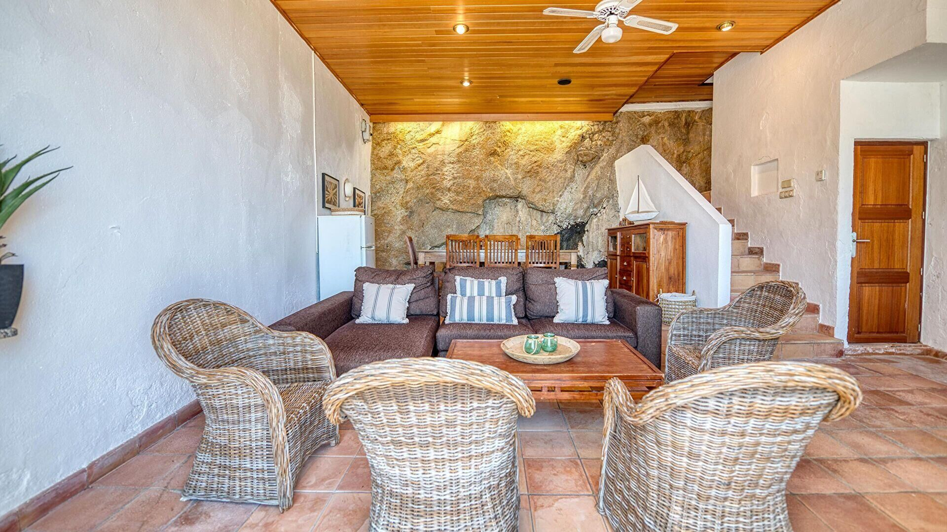 Ground floor- Living/dining room, sea view, television, ceiling fan and sea access.