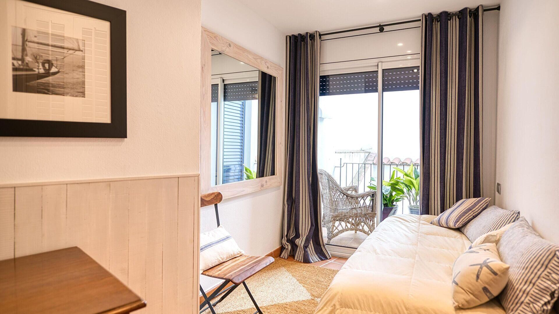 - Bedroom with 2 single beds and 1 foldaway bed and access to the terrace.